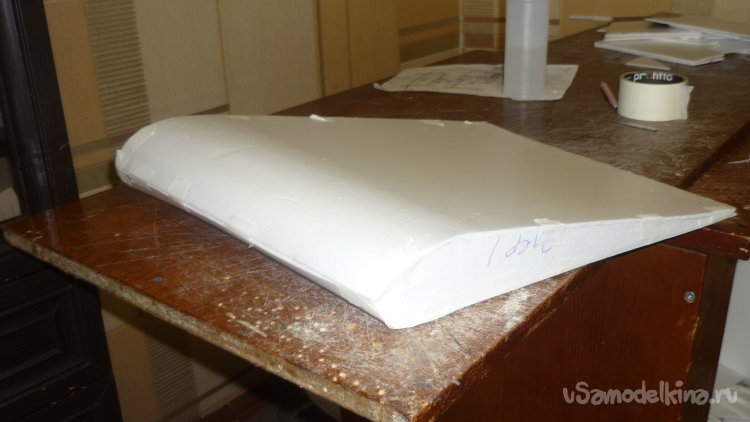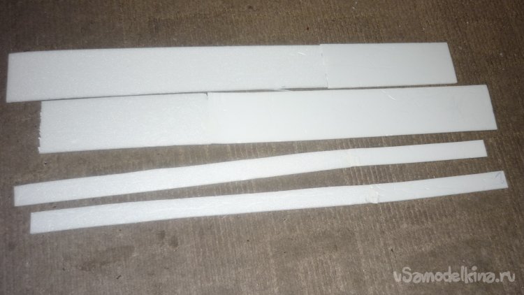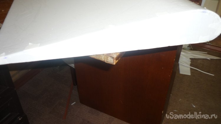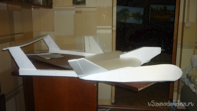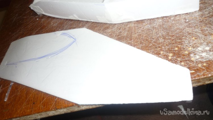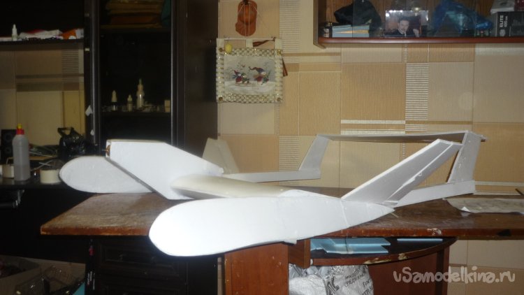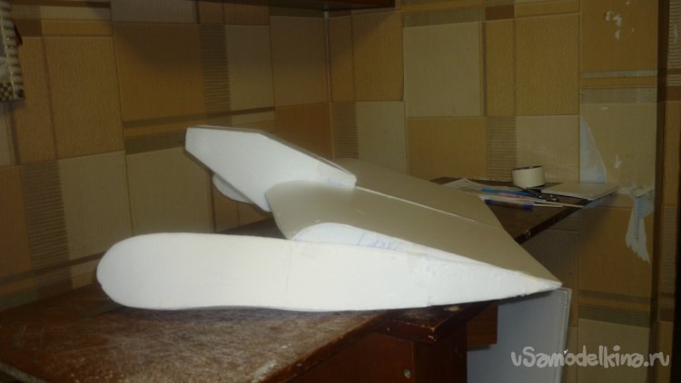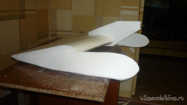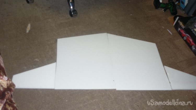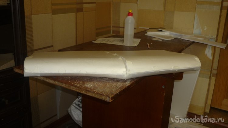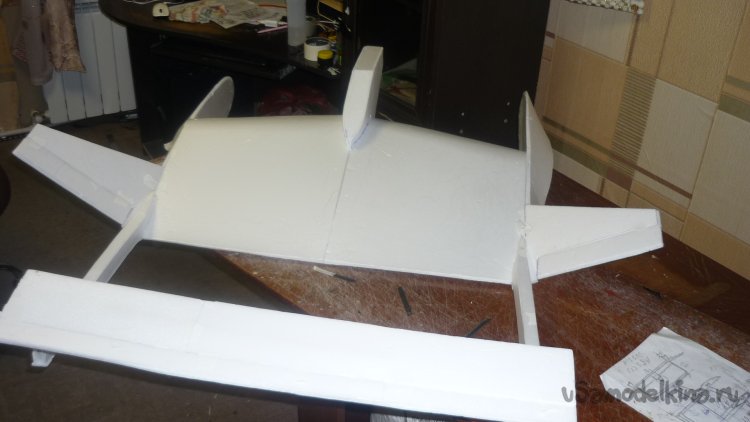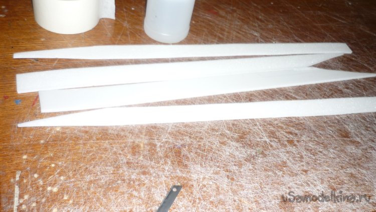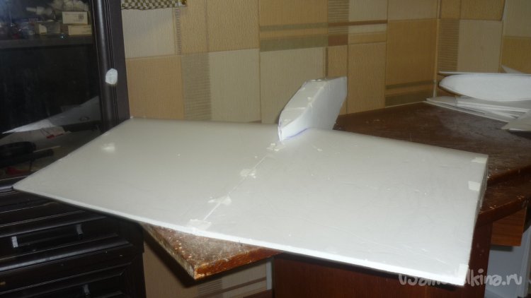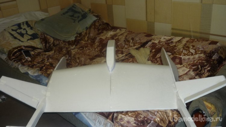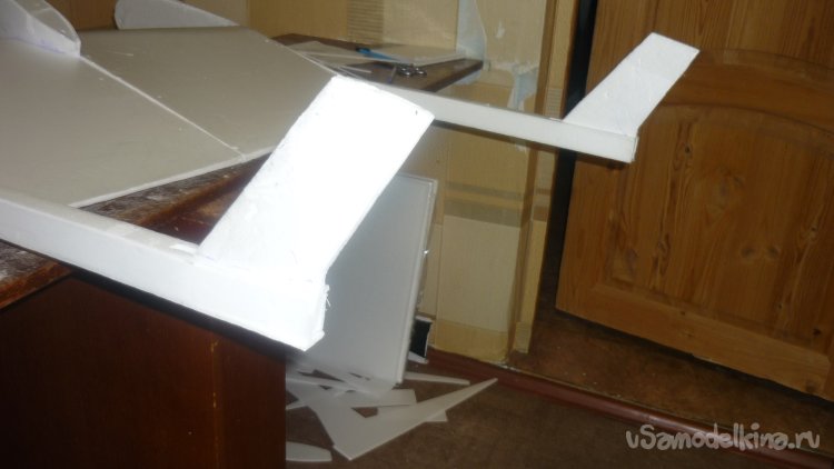 Отдельные элементы конструкции авиамодели могут быть изготовлены из простого, листового утеплителя толщиной 20 мм, серого цвета.
