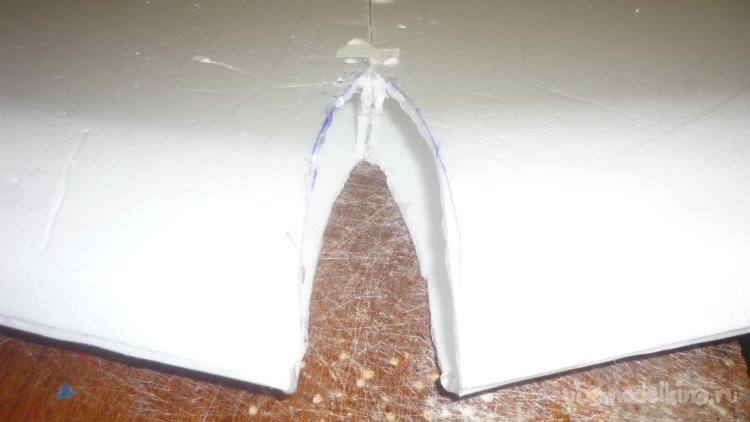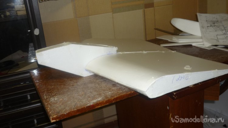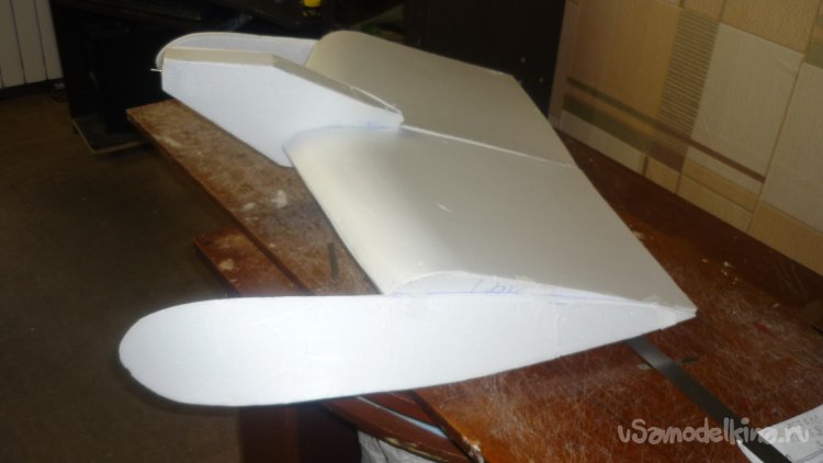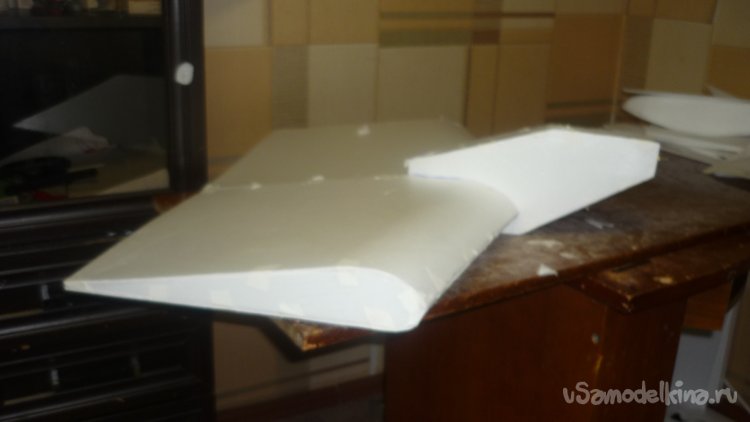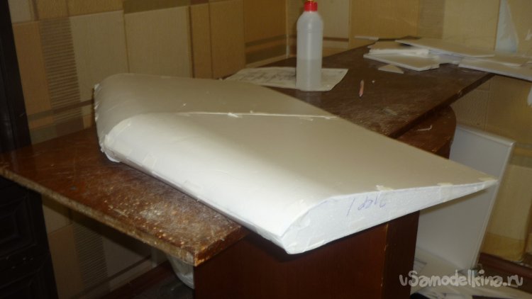 Склеил две половинки основного крыла. Разметил и сделал вырез для установки фюзеляжа.