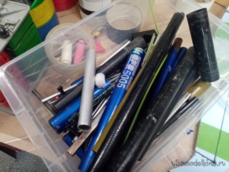 Изготовления спасательного круга было доверено мне. Извлекаю коробочку с трубочками. Подбираю нужную по диаметру. Как раз подошла трубочка из металла для резки пенопласта.