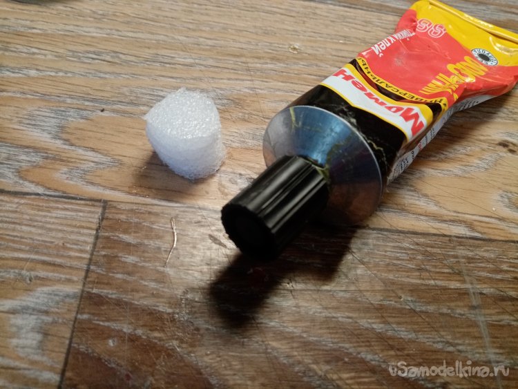 Приклеиваю на нижние ножки страдальца четыре цилиндрика.