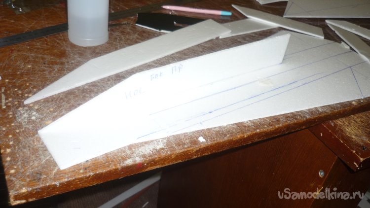 Возможно, дли некоторых отдельных деталей конструкции авиамодели буду применять простую, листовую подложку под ламинат, голубого цвета, толщиной 5 мм.