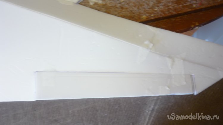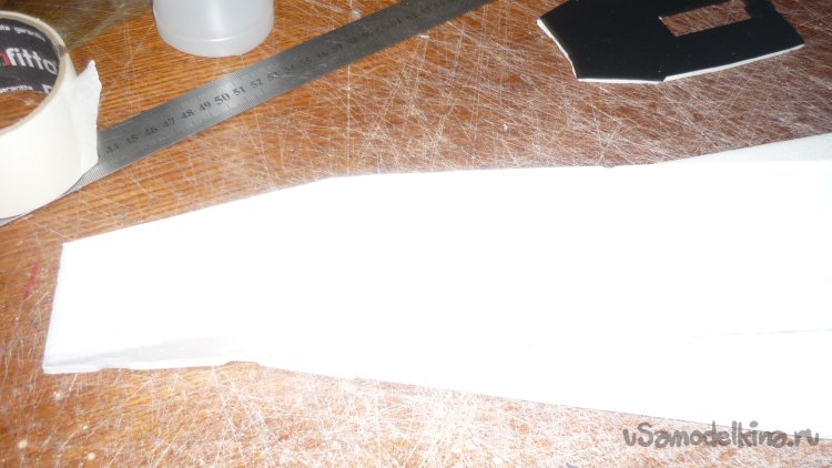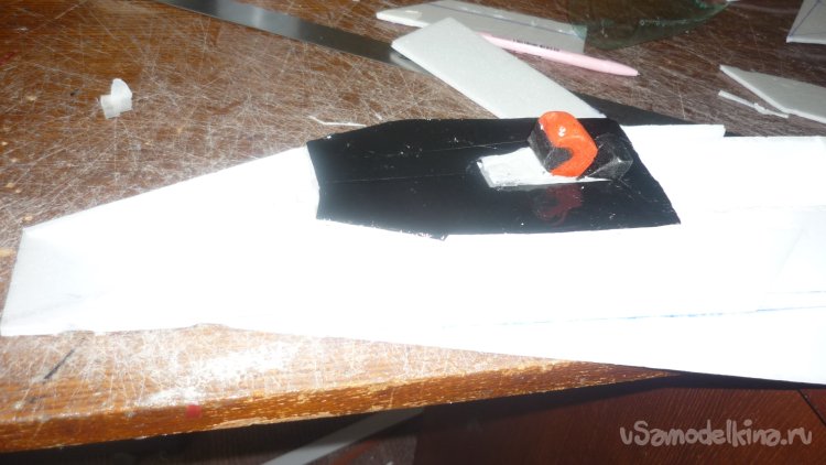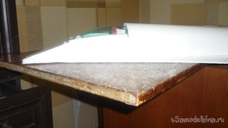 Руль высоты склеил в два слоя и навесил его на бумажный, малярный скотч.
