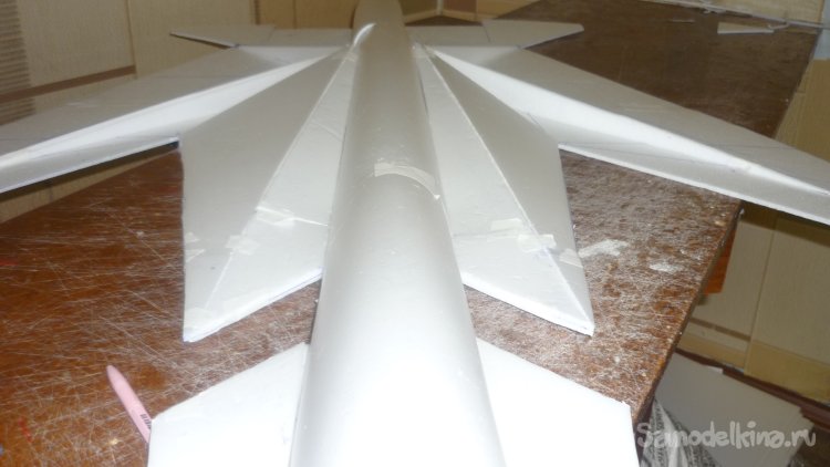 Так, незаметно, смонтировал почти всю внешнюю обшивку. Осталось вклеить несколько сегментов в хвостовой части модели.