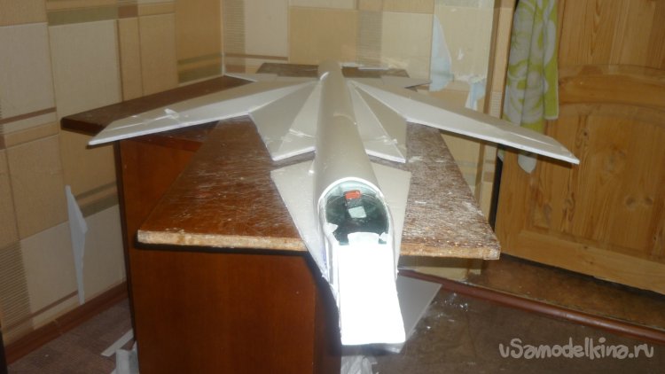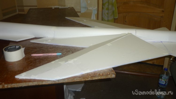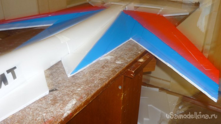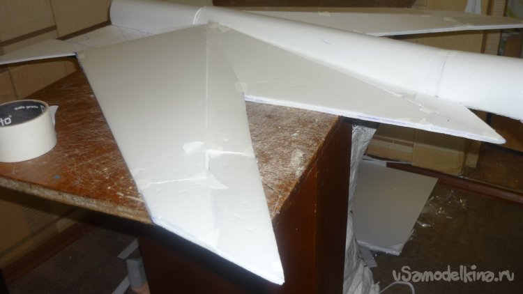 На крыльях вырезал элероны и навесил их на бумажный, малярный скотч.