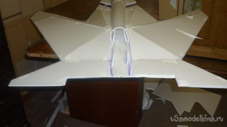 Вырезал внешнюю обшивку фюзеляжа, примерил.