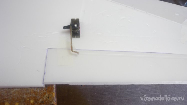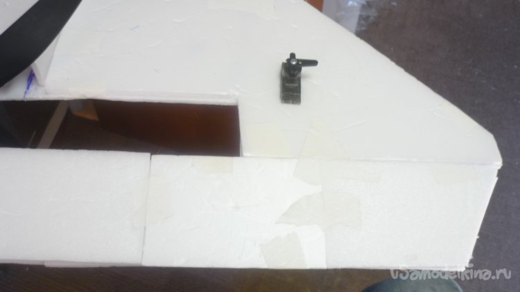 Разметил место установки сервомашинки управления рулём высоты, смонтировал.