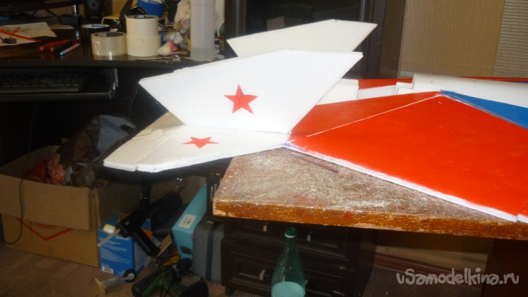 Склеил два слоя заготовок для килей. Нанёс красные звёзды.
