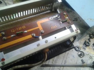 Крепеж слюдяного конденсатора показан на фото (Рис5а). Приклеен на клей (БФ-2) к пластине.