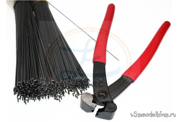 Затем изготовил и установил тяги на элевоны. Малость замудреная конструкция. Долго возился. Как уже неоднократно говорил. Первую модель всегда делаю точно по чертежу. Если буду повторять внесу свои коррективы в конструкцию и размещение оборудования. Тяги изготовил из омедненной проволоки от сварочных аппаратов диаметром в 1,5 мм. Кончики сгибаю таким приспособлением. Раз, и готово.