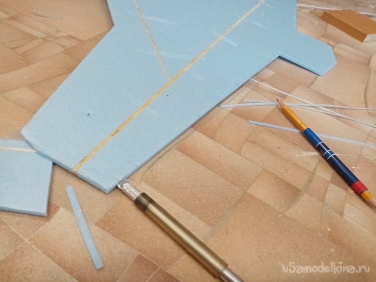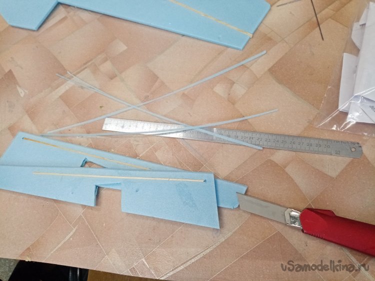 Резательными инструментами нарезаю все заготовки корпуса и крыльев.