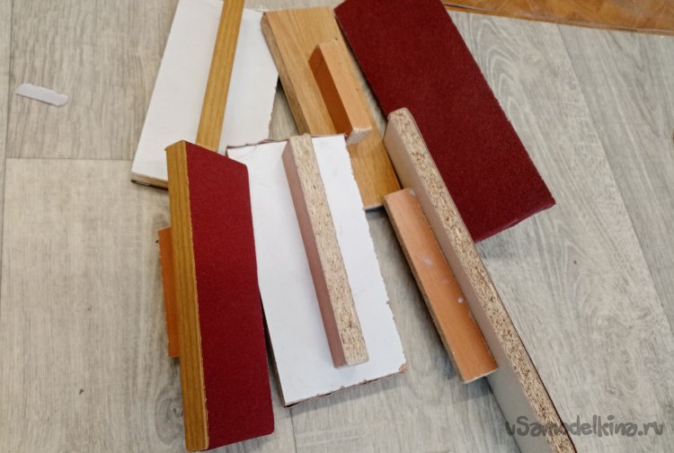 Нужное количество реек толщиной в 5мм немного поправил самодельными утюжками со шкуркой.