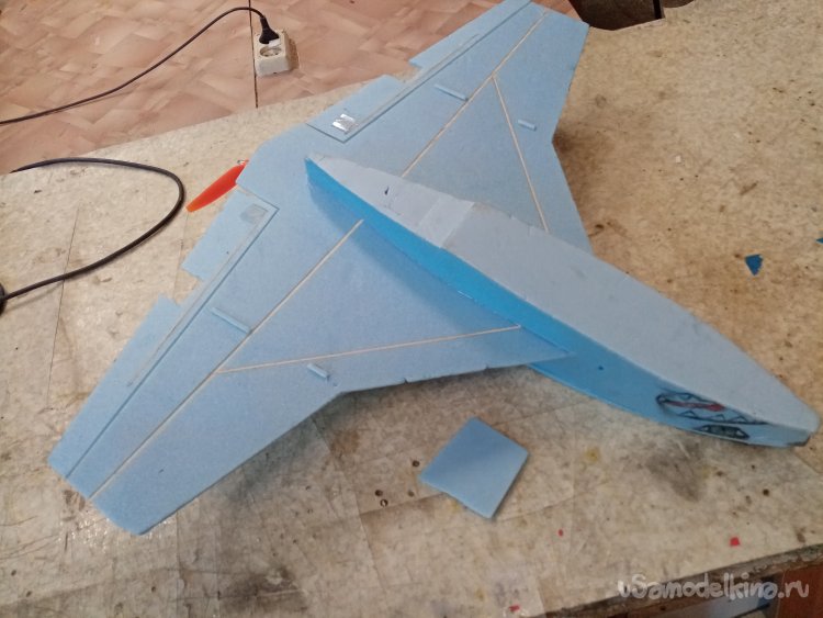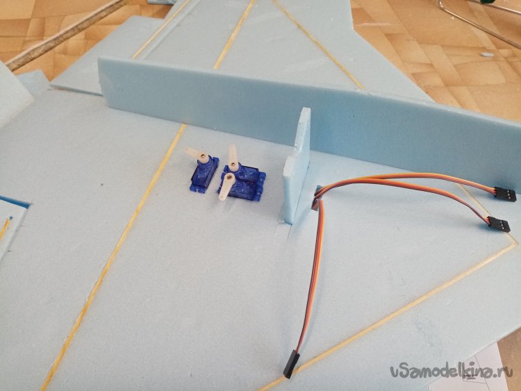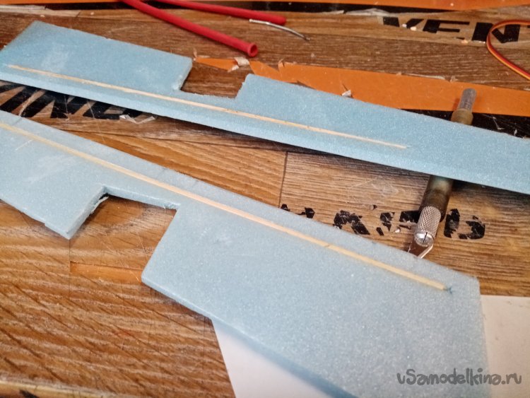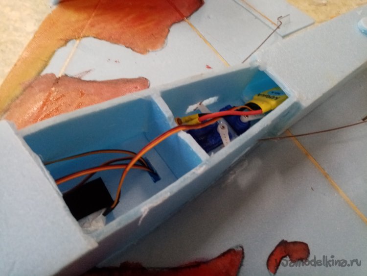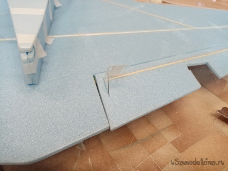 Немного подрезаю длину элевона. Поскольку под нагрузкой крыло может немного прогибаться и заклинит перемещение рулевой поверхности.