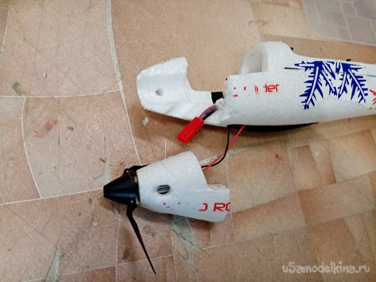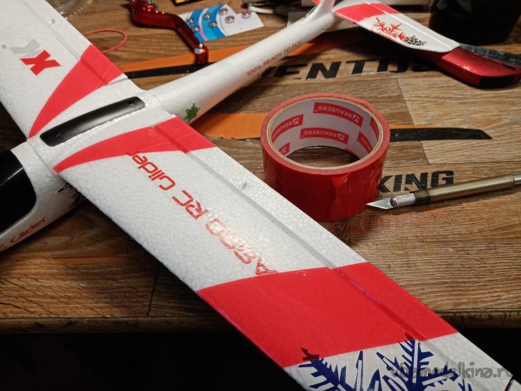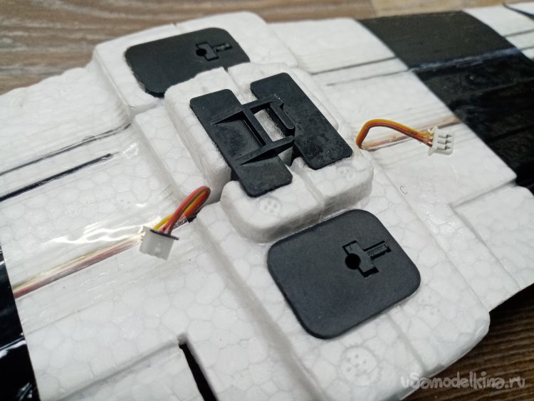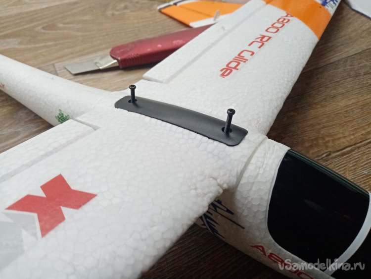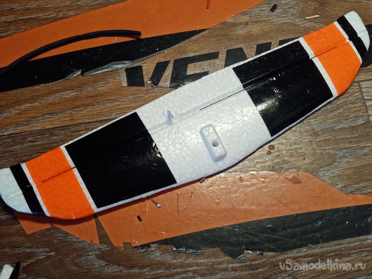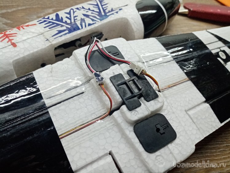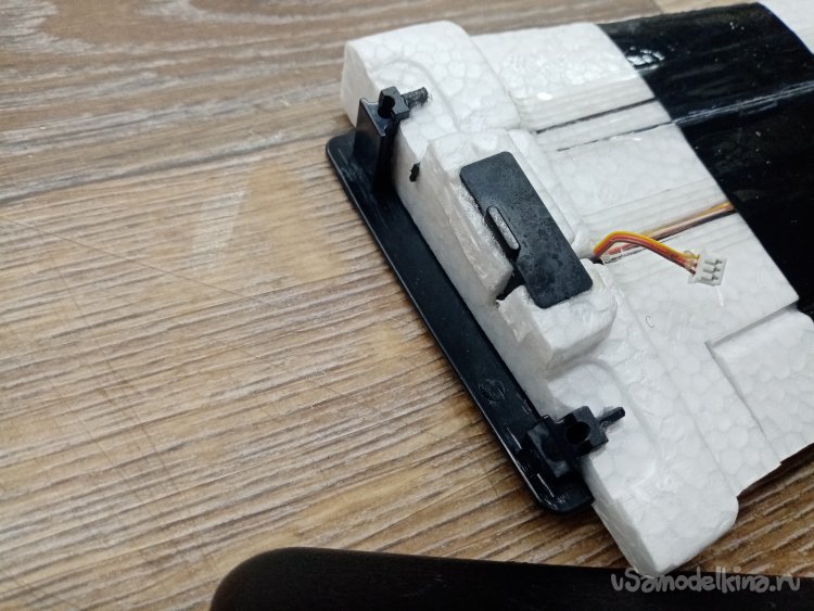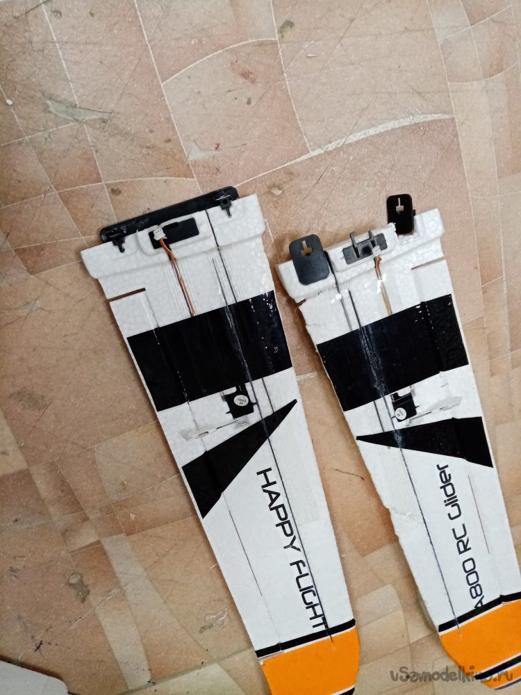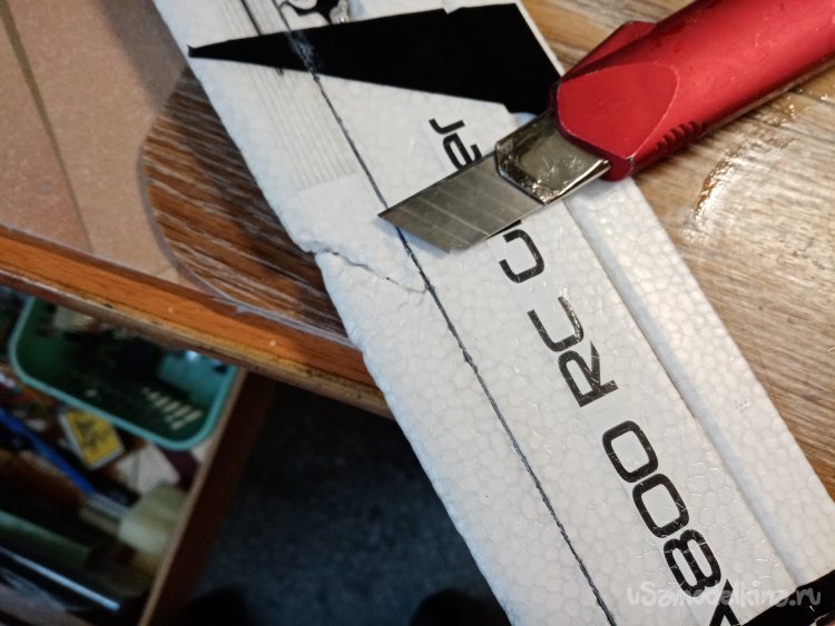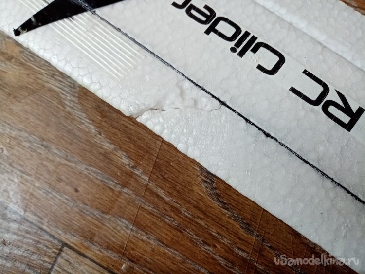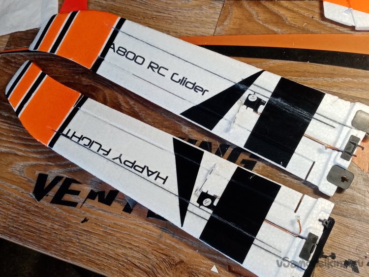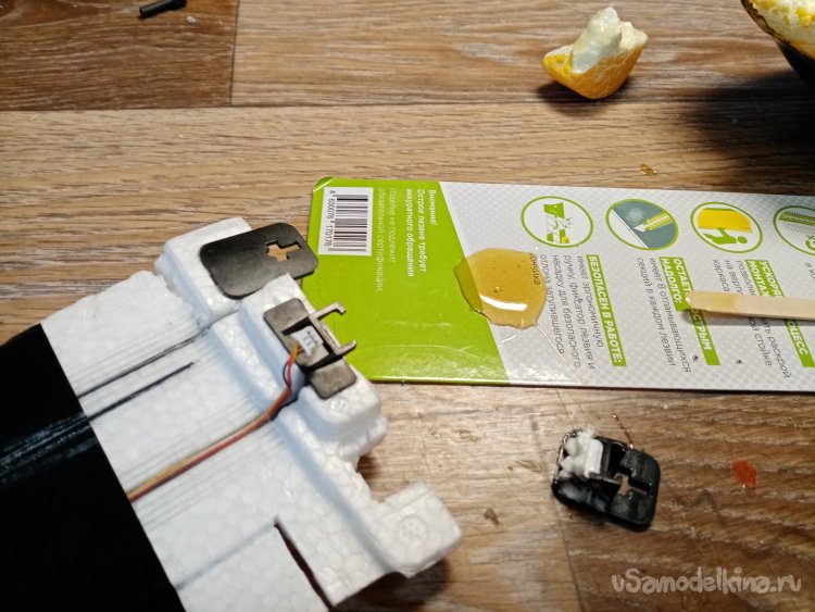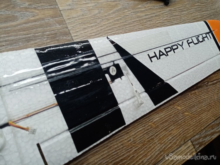 И так начинаю собирать самолетик для полетов. Первым делом немного укрепил клеем выход проводов управления сервоприводами из крыла