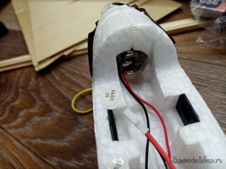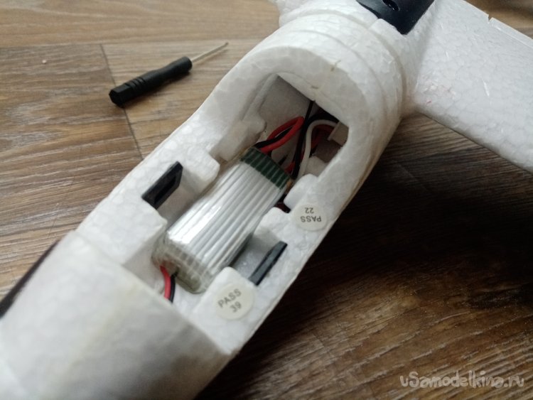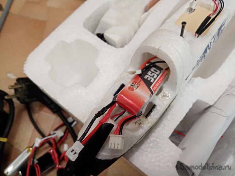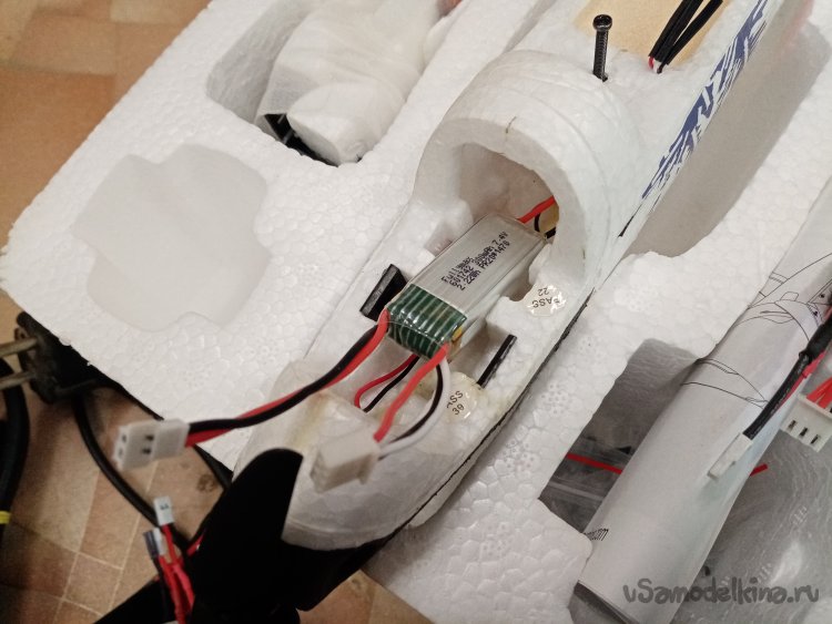 Примеряю новые аккумуляторы на самолетик. Мои немного тяжелее. Подрезал выемку в кабине и немного задвинул аккумулятор к крылу, теперь центр тяжести на месте.