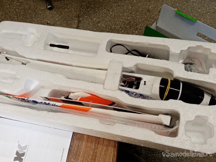 И так открываю, чего такое внутри уложено. В пенопластовом контейнере четко вырезаны карманы для деталей самолетика. Инструкция прилагается. По картинкам все понятно. Как и чего собирать у куда прикручивать.