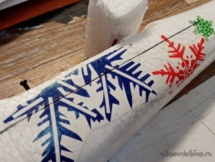 И небольшой прутик в центр крыла. До кончиков не стал врезать. Пусть будут мягкие для амортизации.