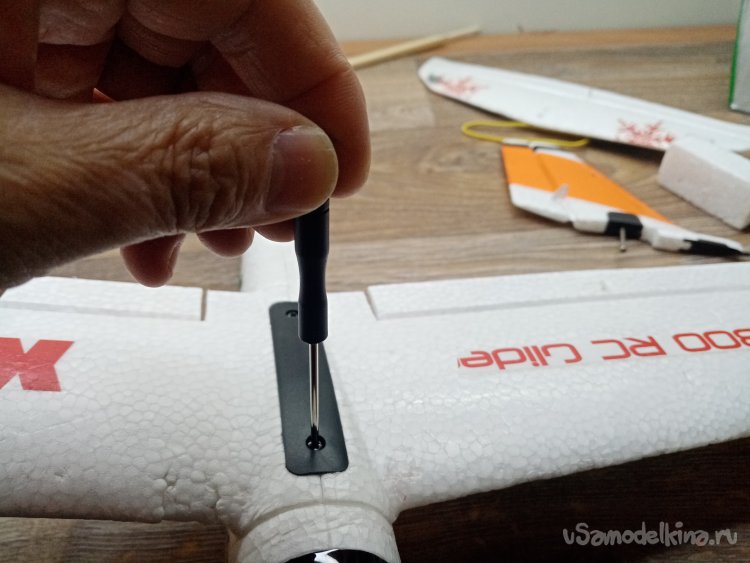 Крылья закрепляются на фюзеляже парочкой болтиков на 2,5мм разной длины. Первый больше второй меньше. В этой ситуации помогает приложенная отвертка с неплохим жалом на крест.