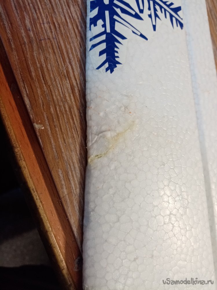 Горячая вода мне поможет устранить дефект. По новой кипячу чайник и поливаю место дефекта кипятком. Пенопласт нагревается и вспучивается. Выправилось практически полностью.