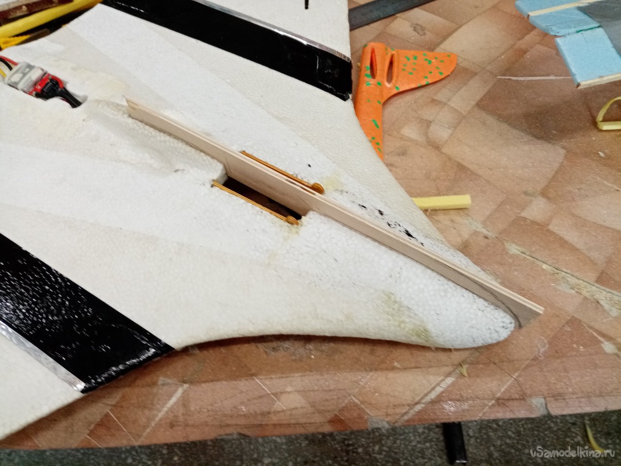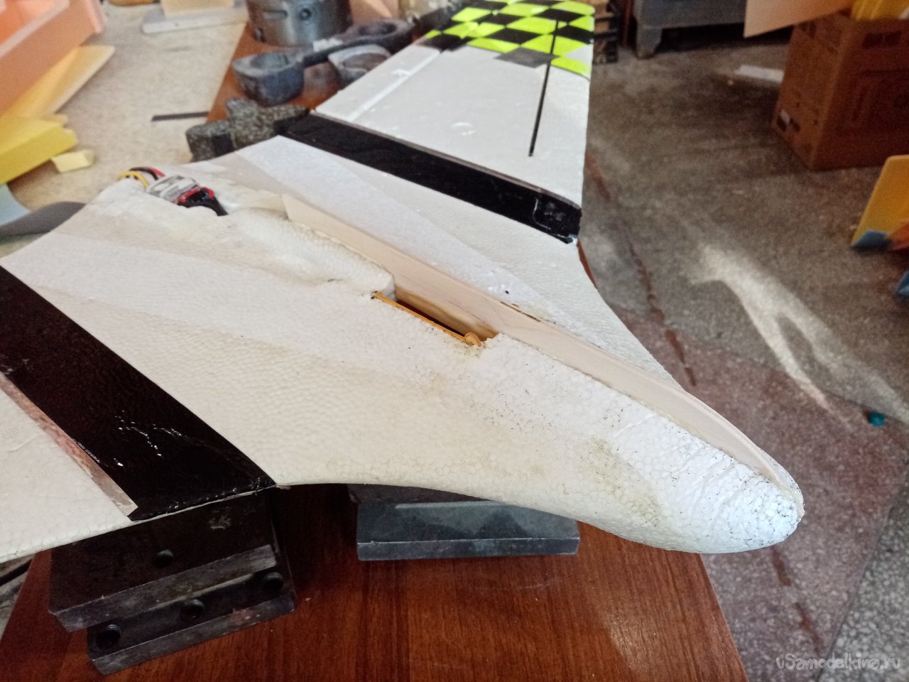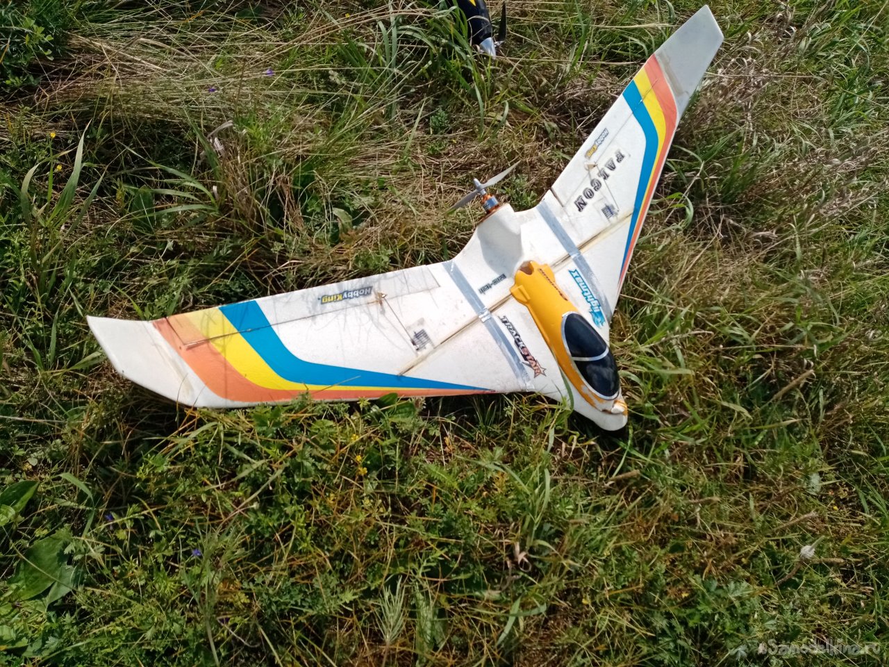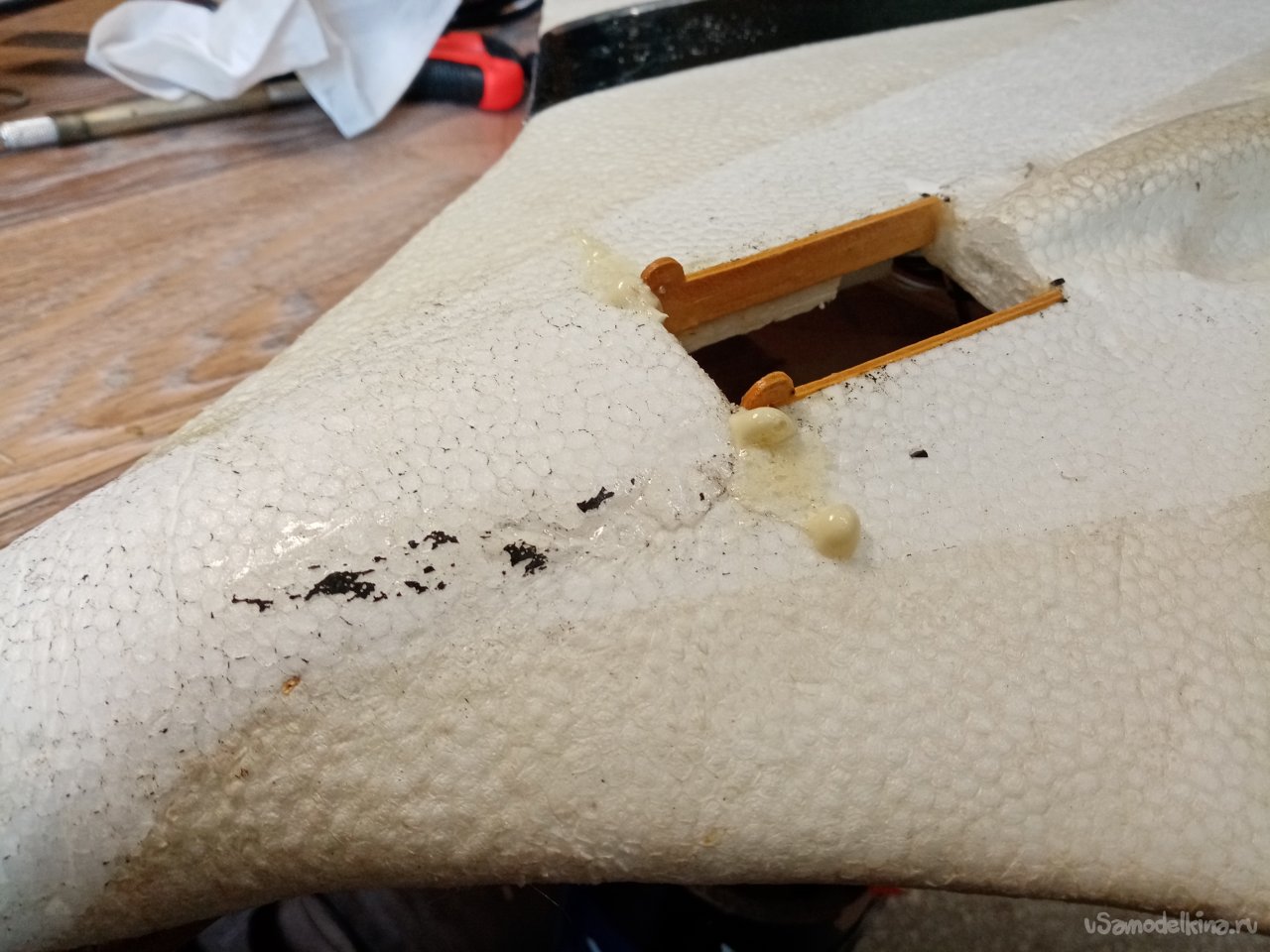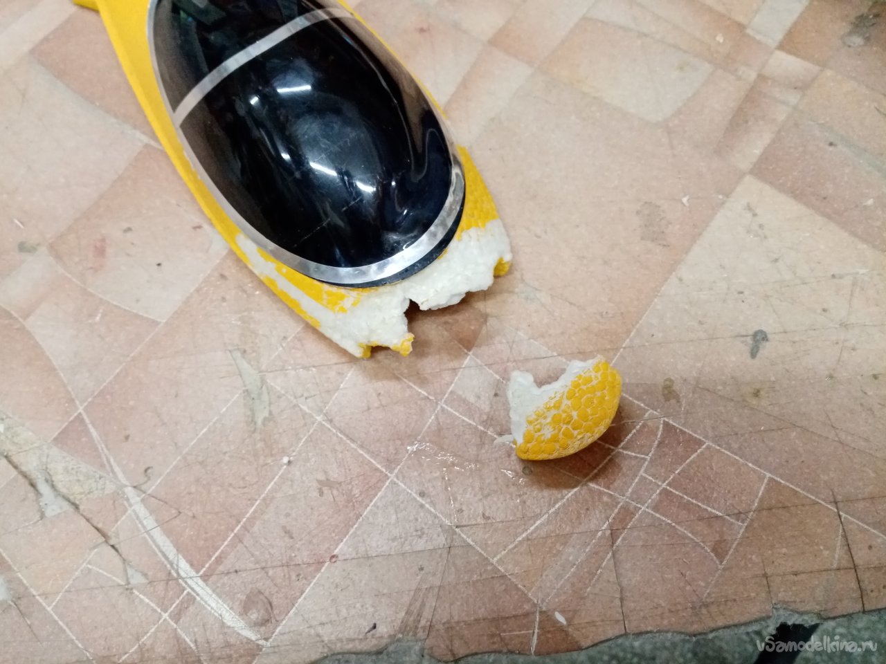 Решил все-таки поднять крыло в воздух. Установил приемник настроил. Летал практически все лето. Но неприятность не заставила себя ждать. Крыло валилось при потери скорости в плоский штопор. Падения проходили достаточно удачно. В последний раз на пути оказался камень и немного повредил носик и крышку кабины. Что делать нужно, ремонтировать.