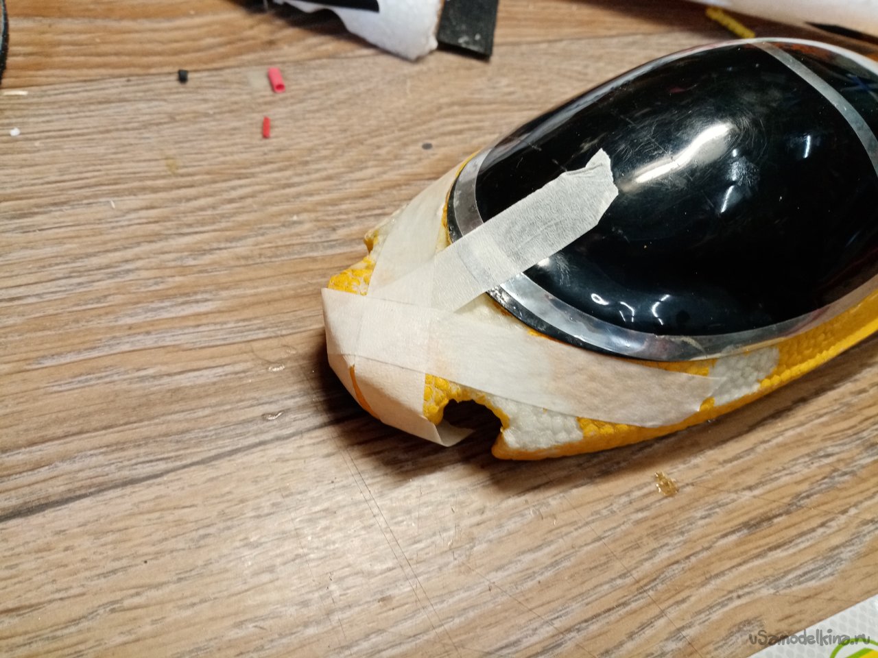 Пока возился с фюзеляжем капот засох. Снимаю скотч, немного подрезаю клей ножом. Дорабатываю шкуркой.