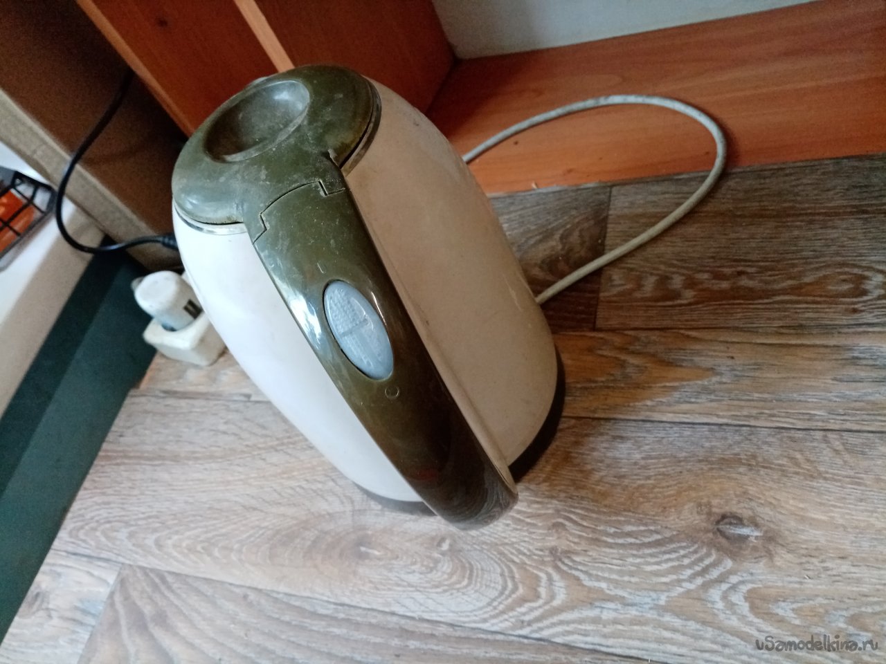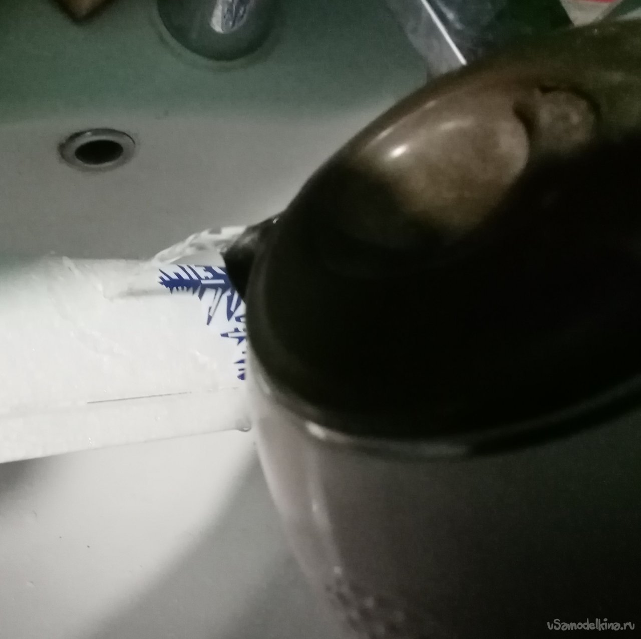 Дальше нужно заняться восстановлением формы немного помятого носика. Для этой цели вскипятил чайник и начинаю поливать пенопласт над раковиной со всех сторон. При нагреве носик выпрямляется, практически принимая первоначальную форму.