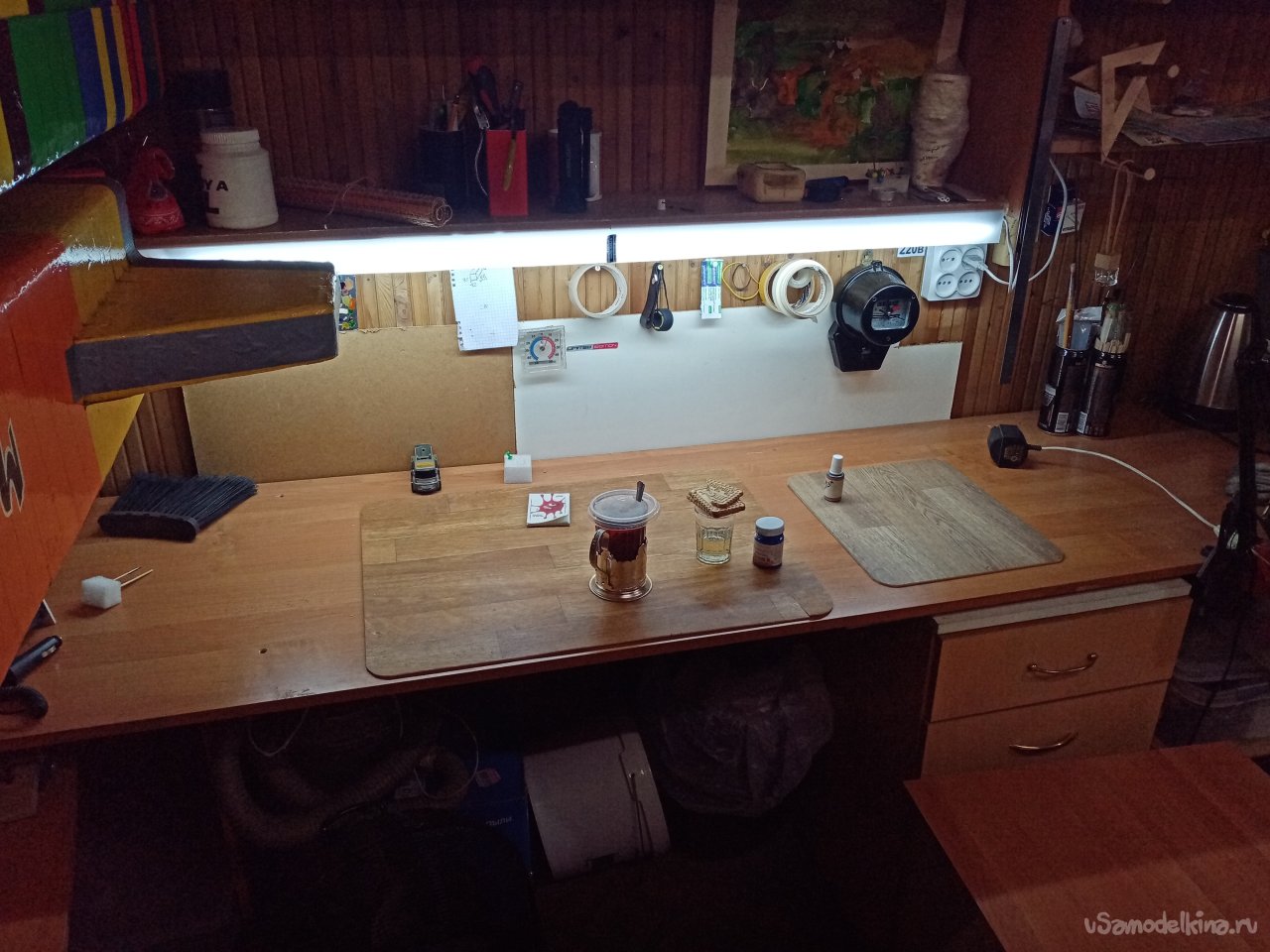 Самолетик пролежал в гараже зиму, настало лето как всегда. Я приготовился к сезону. Прибрался, организовал рабочее место. Самолеты протер от пыли и сезон начался.