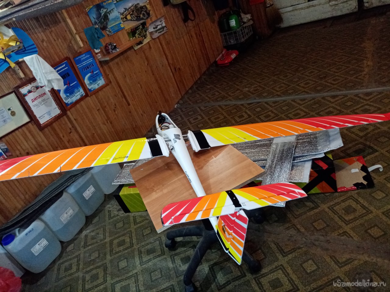 Давно подарил мне товарищ по борьбе это крылышко с полным фаршем. Все оборудование было установлено. Только подключай приемник и аккумулятор и лети. Но не дошли руки в прошлом году.
