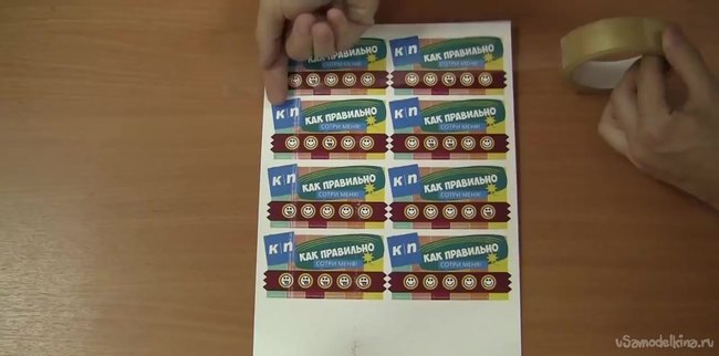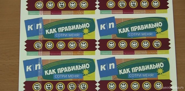 Распечатать билеты нужно на плотной бумаге. Автор видео, например, сделал в графическом редакторе восемь билетов, один из которых является призовым.