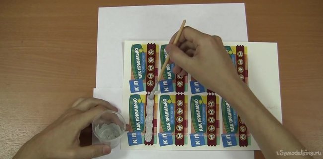 Получившуюся смесь нужно аккуратным образом нанести на ленту прозрачного скотча. Следует обязательно проследить за тем, что краска полностью покрывала скотч. В некоторых случаях один слой краски может быть недостаточным. В таком случае необходимо подождать, пока краска высохнет и нанести еще один слой. Нужно наносить новые слои, что изображения на бумаге не было видно.