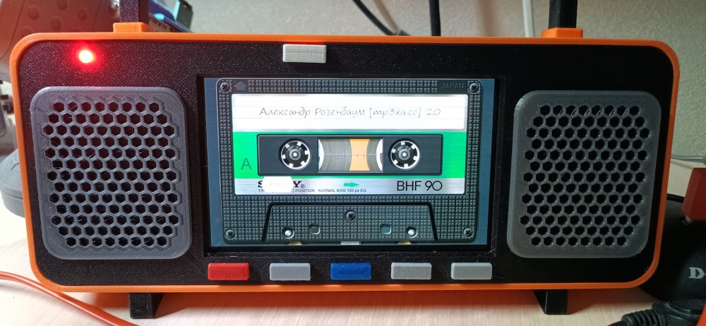 Самоделка представляет собой создание ретро-корпуса в виде кассетника прошлого века. На эту идею подтолкнули увиденные в интернете скриншоты приложения для смартфона в виде кассетной деки. Приложение называется «Casse-o-player» (спасибо разработчику). Оно эмулирует на экране процесс проигрывания магнитофонной кассеты при воспроизведении mp3-файлов с соответствующими индикаторами и элементами управления.