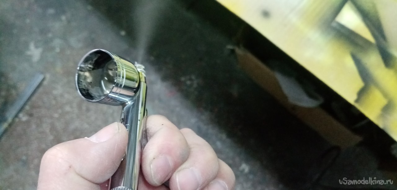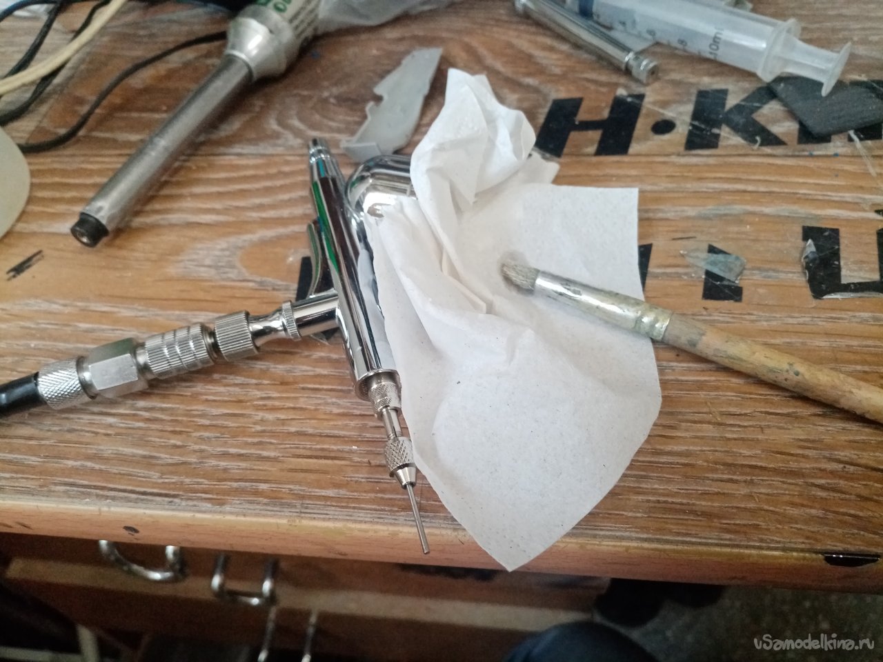 Основной рабочей лошадкой выступает простой китайский аэрограф. С фильтром для отсечения влаги.