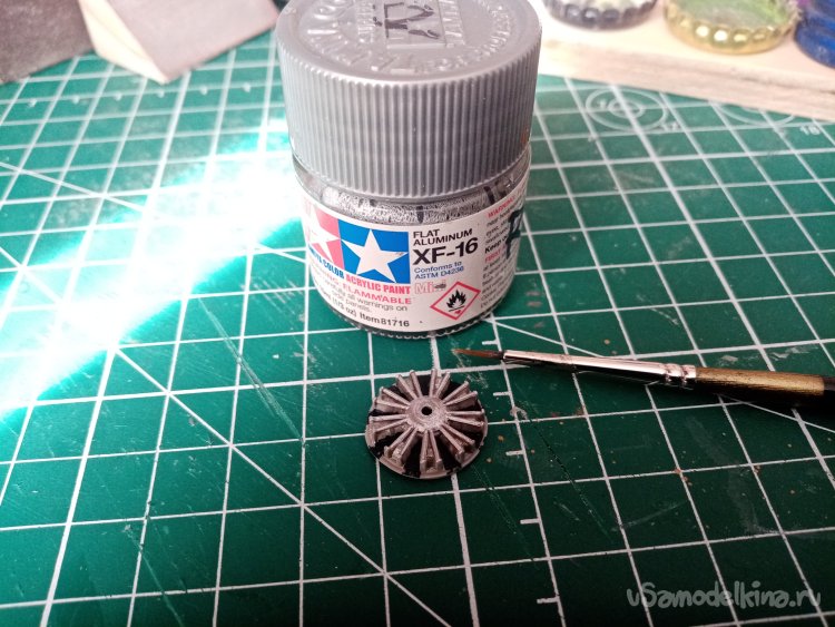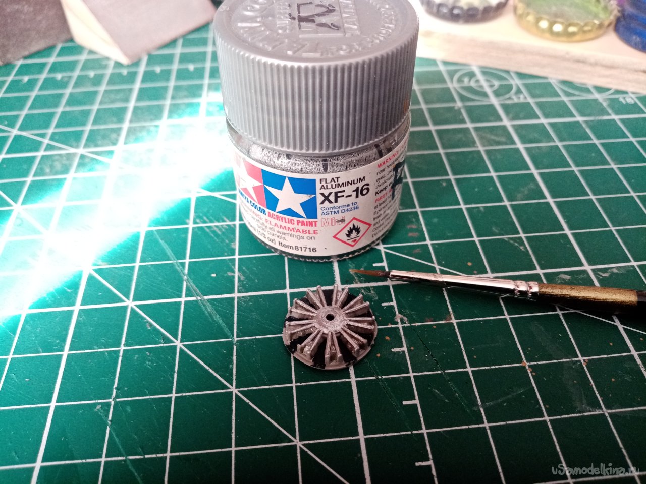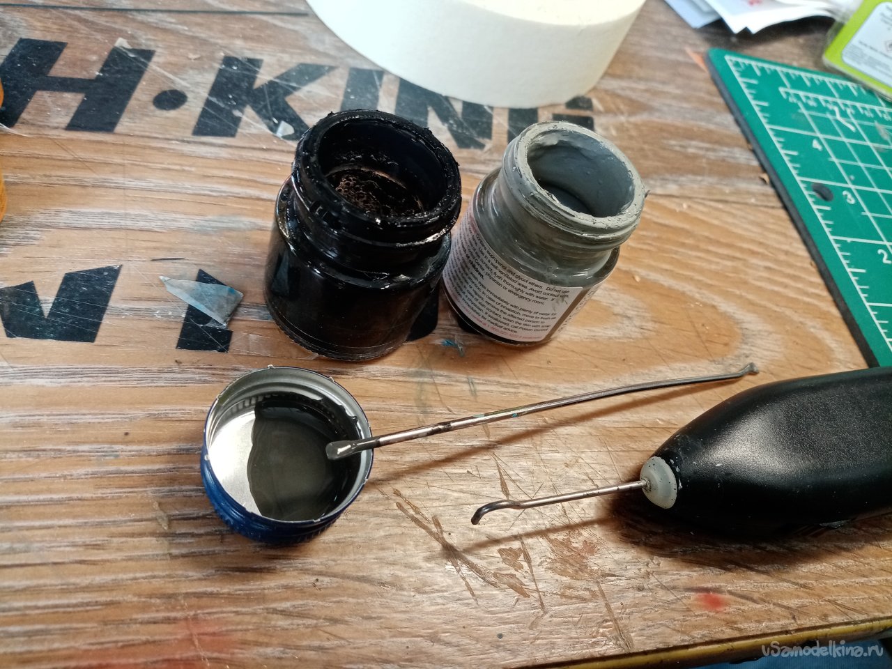 Коробочка с красками от «Звезды». Окрашиваю последовательно в несколько слоев черной. Затем алюминий сухой кистью.![]()