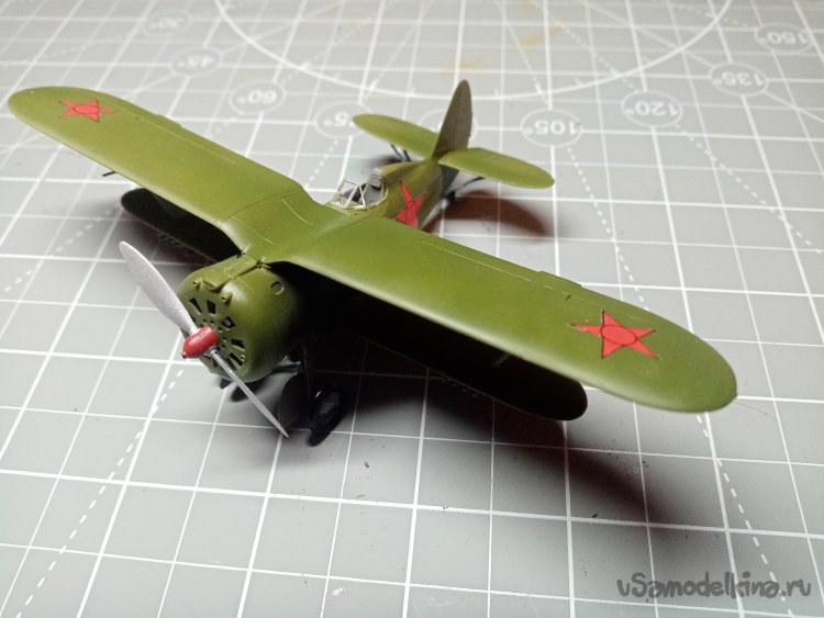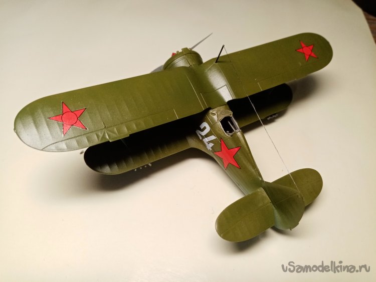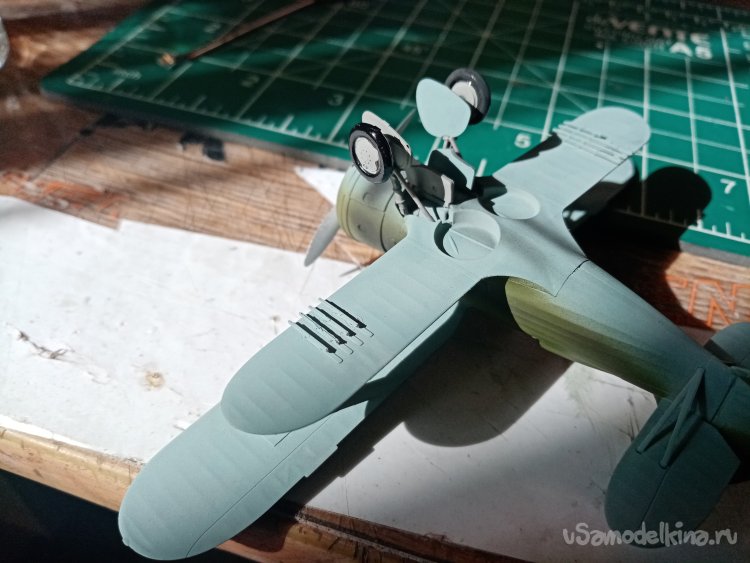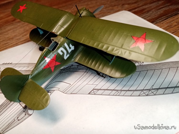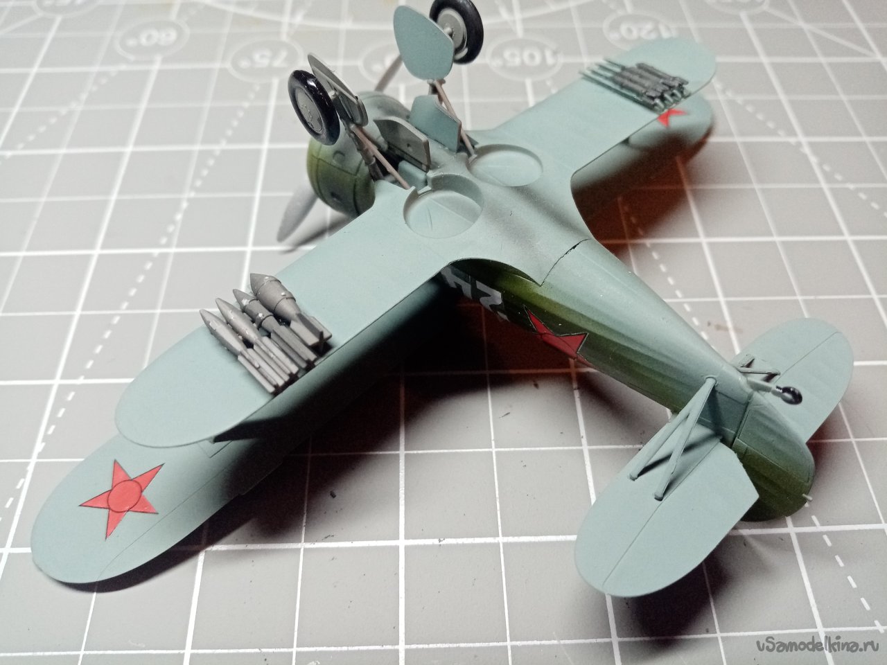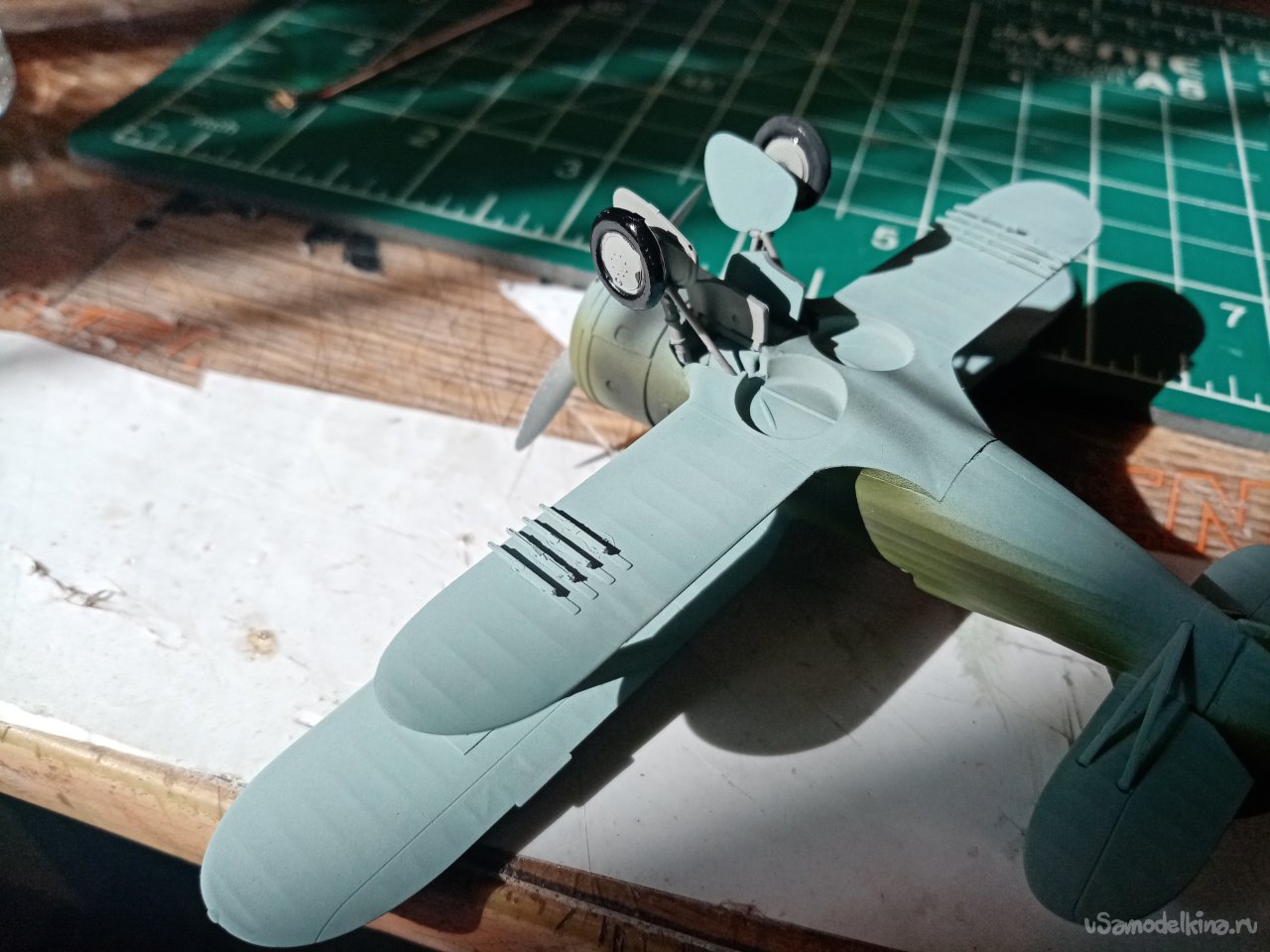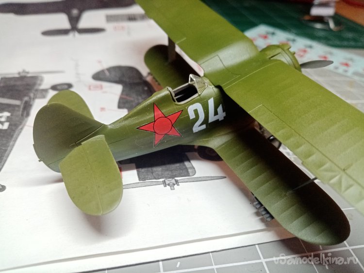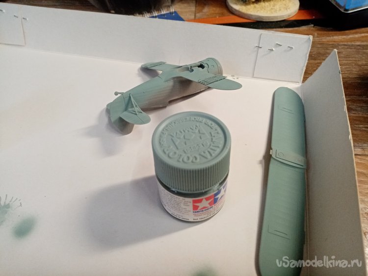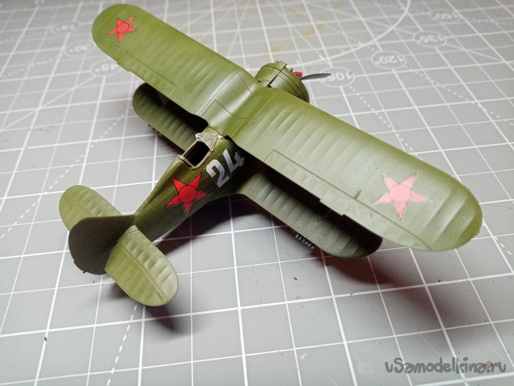 Немного подождав. Когда декали приклеятся, можно и нанести полуматовый лак на всю модель. Такой прием значительно повышает риск отклейки картинки. Клей плоховат оказался.
