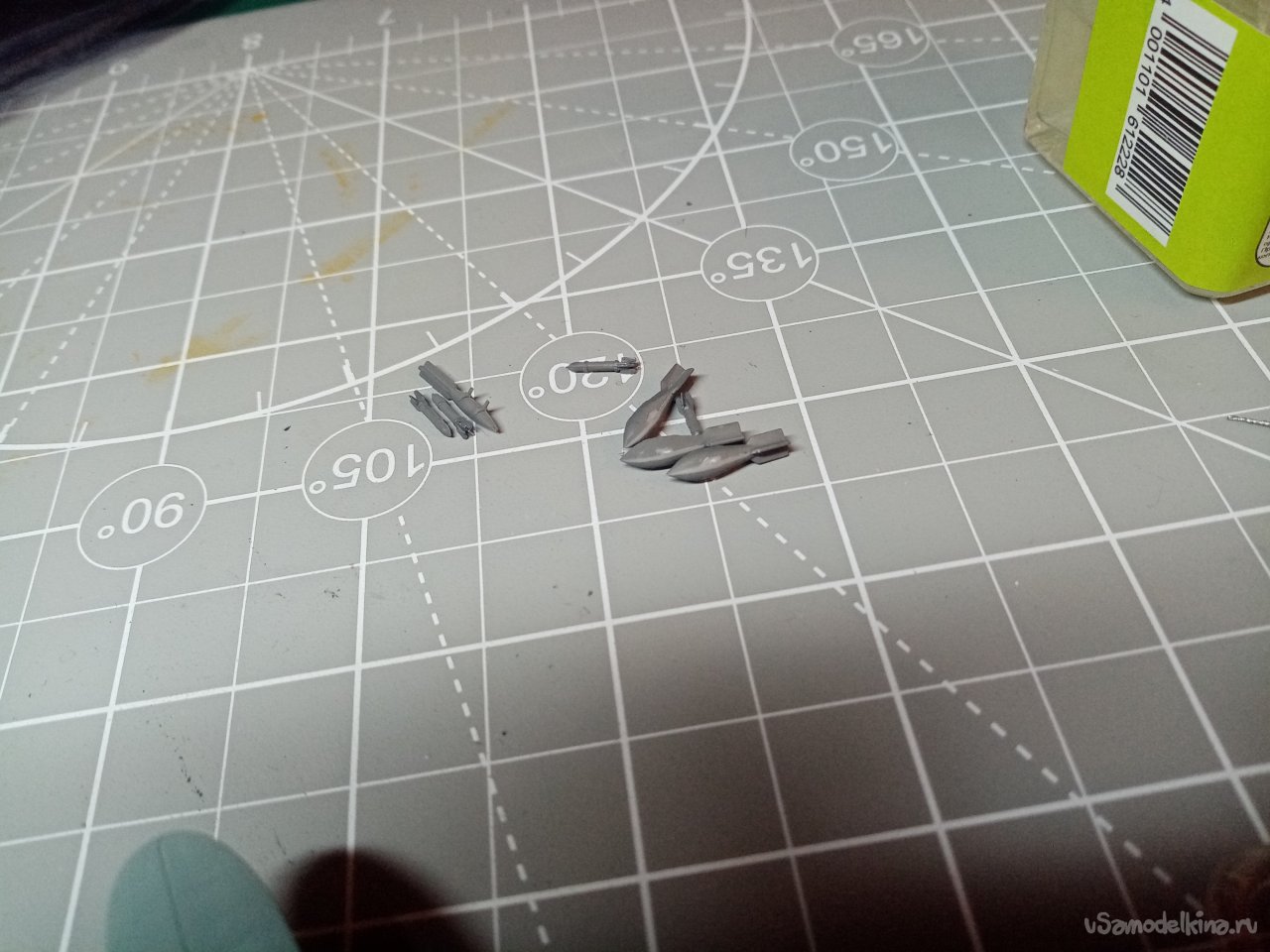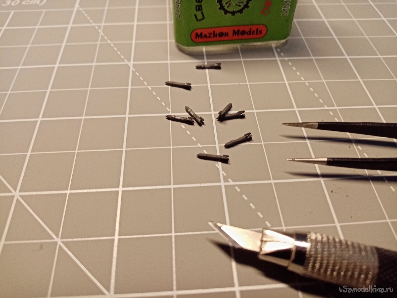 Следующий этап изготовление модели, перехожу на мелочевку. Шасси, створки, направляющие для эресов и бомб.