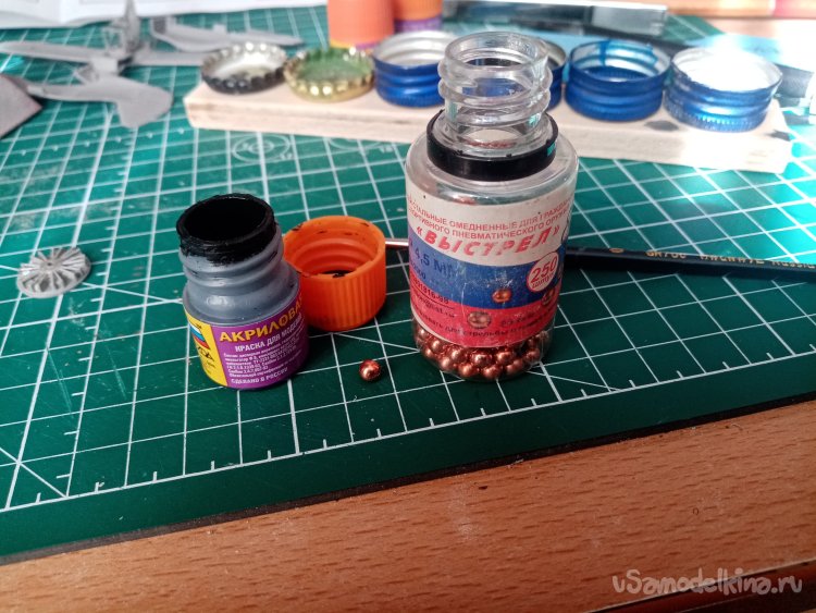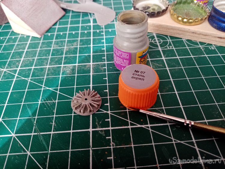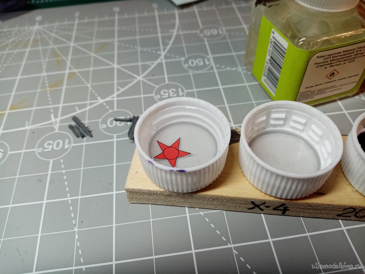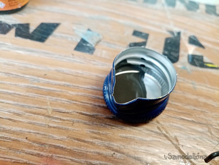 Для разведения краски использую крышки от напитков. Краешек можно согнуть, удобно наливать в приемную чашку аэрографа.