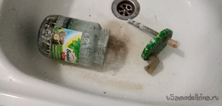 Промываю от загрязнений в банке с водой. В крышку вставлены трубки. Одна до самого дна, в нее вставляется аэрограф и вся гадость пробулькивается через воду. В воздух ничего не попадает. После окончание работы, просто выливаю воду.