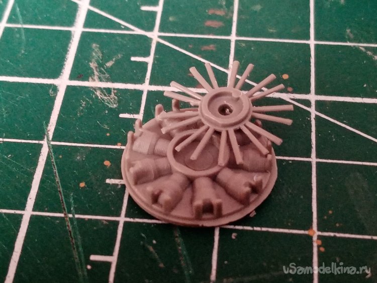 От литников отделяю детали двигателя. Склеиваю, нужно красить.