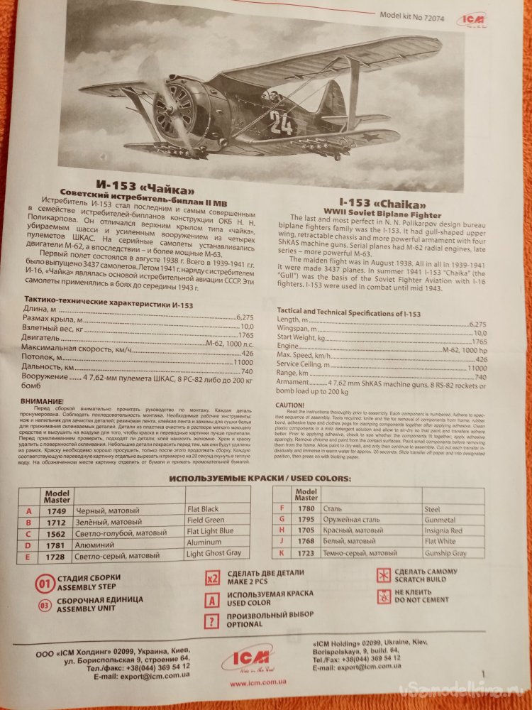 Попалась на глаза симпатичная модель истребителя «Чайка». Так сказать напарник другого нашего знаменитого истребителя И-16 «Ишака». Не удержался, купил. Масштаб маленький вместе с соответствующей ценой конечно. Конечно, масштаб 72 слегка маловат, но ничего справлюсь. Тем более фирма «ICM» мало знакома мне по предыдущим моделям. Попробую собрать, посмотрю, что и как.