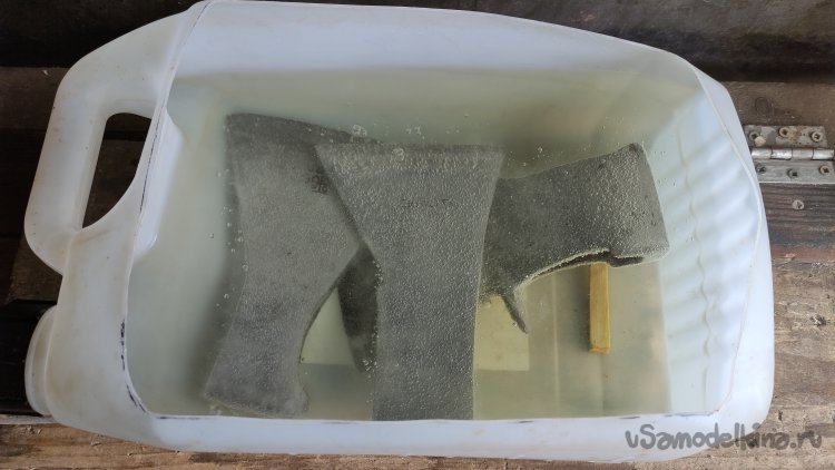 А для придания металлу серого оттенка, выдерживаю «голову» в растворе лимонной кислоты (примитивный аналог воронения). Можно, конечно, использовать и какое-нибудь средство для холодного воронения, но пока обойдусь кислотой. … И кстати, раствор лимонной кислоты хорошо работает, пока он горячий. В процессе остывания реакция замедляется. Поэтому, лучше всего, для обработки в лимонной кислоте использовать либо эмалированную посуду либо стеклянную (только осторожно). В такой посуде раствор можно подогревать в процессе работы.