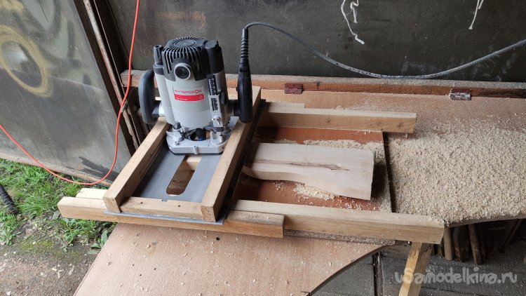 Боковые поверхности выравниваю и довожу толщину до необходимой величины при помощи фрезера, на самодельном станке для выравнивания слэбов.