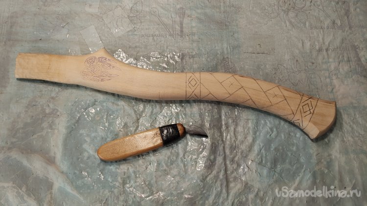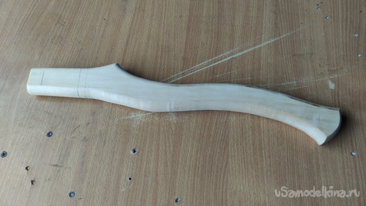 Пока «голова» проходит водные процедуры, приступаю к изготовлению топорища. Параметры и вид топорища, так же, заданы заказчиком.