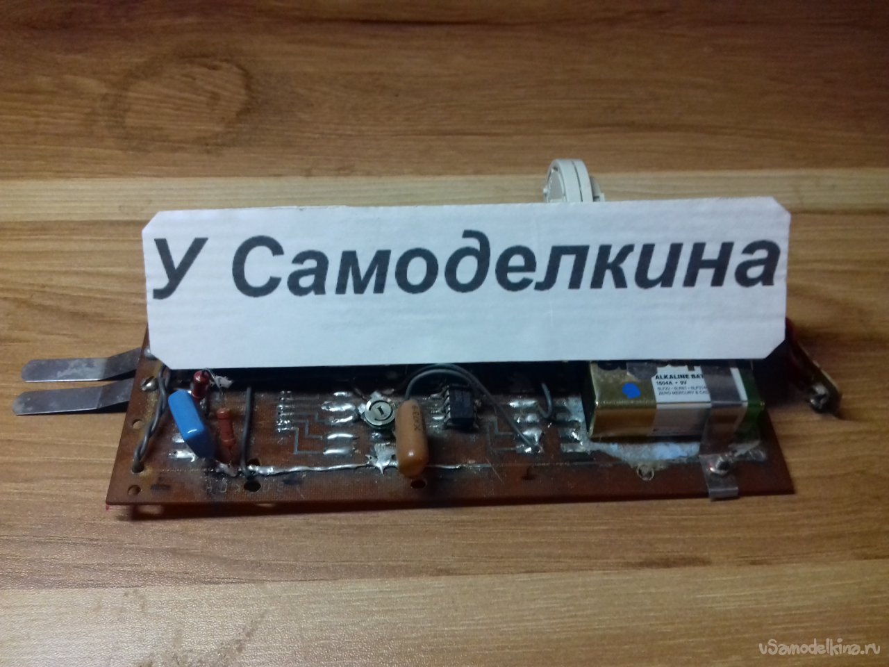 Сборка сигнализатора заключалась в распайке деталей на монтажной плате согласно предварительной схеме. Затем проверка в работе, в процессе которой пришлось подкорректировать номиналы некоторых элементов.