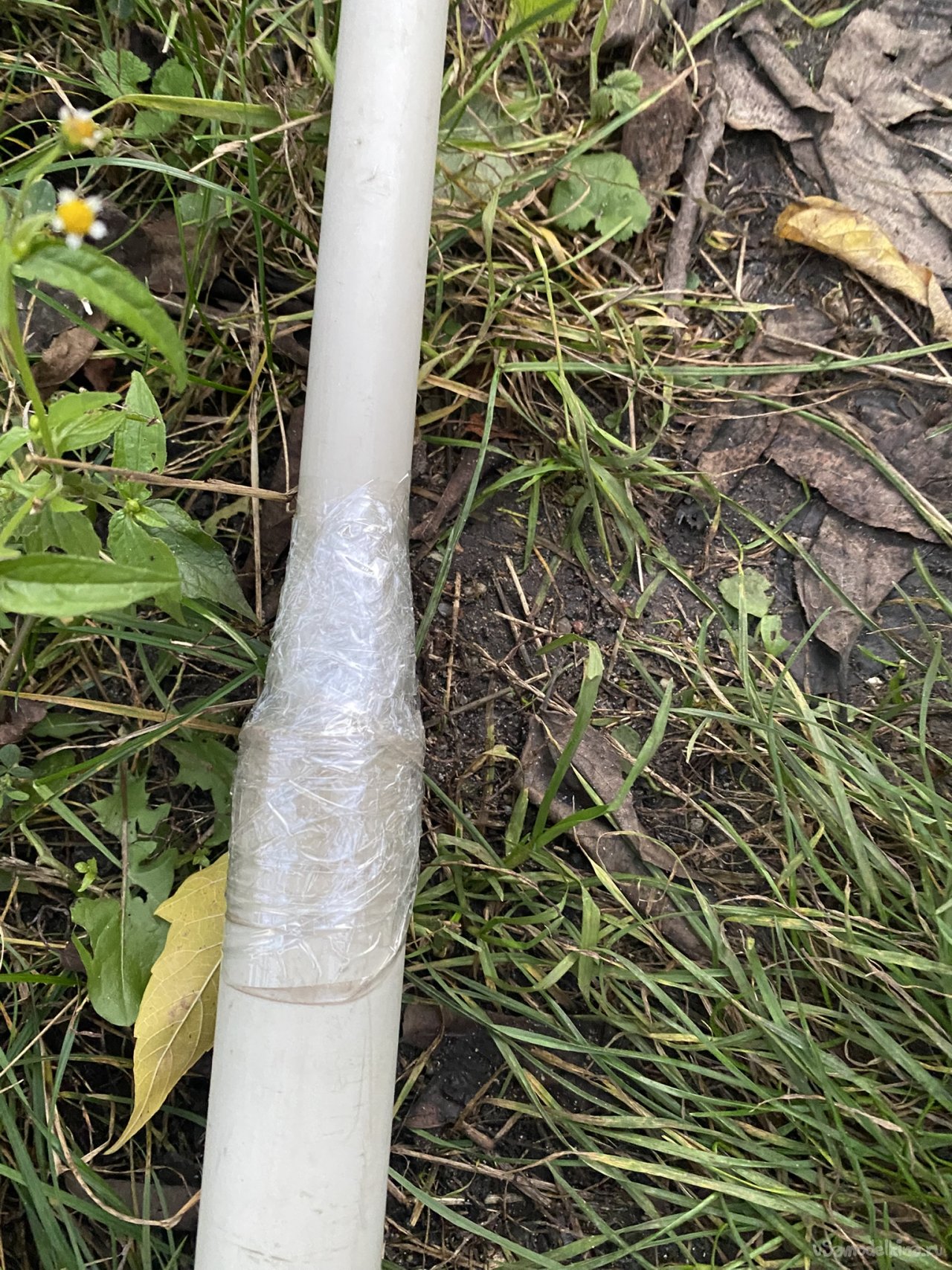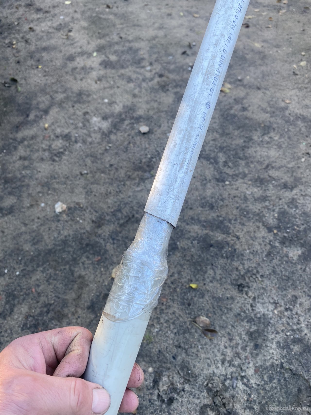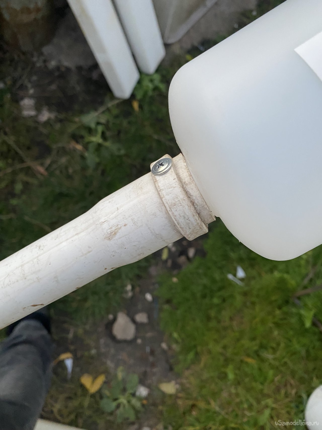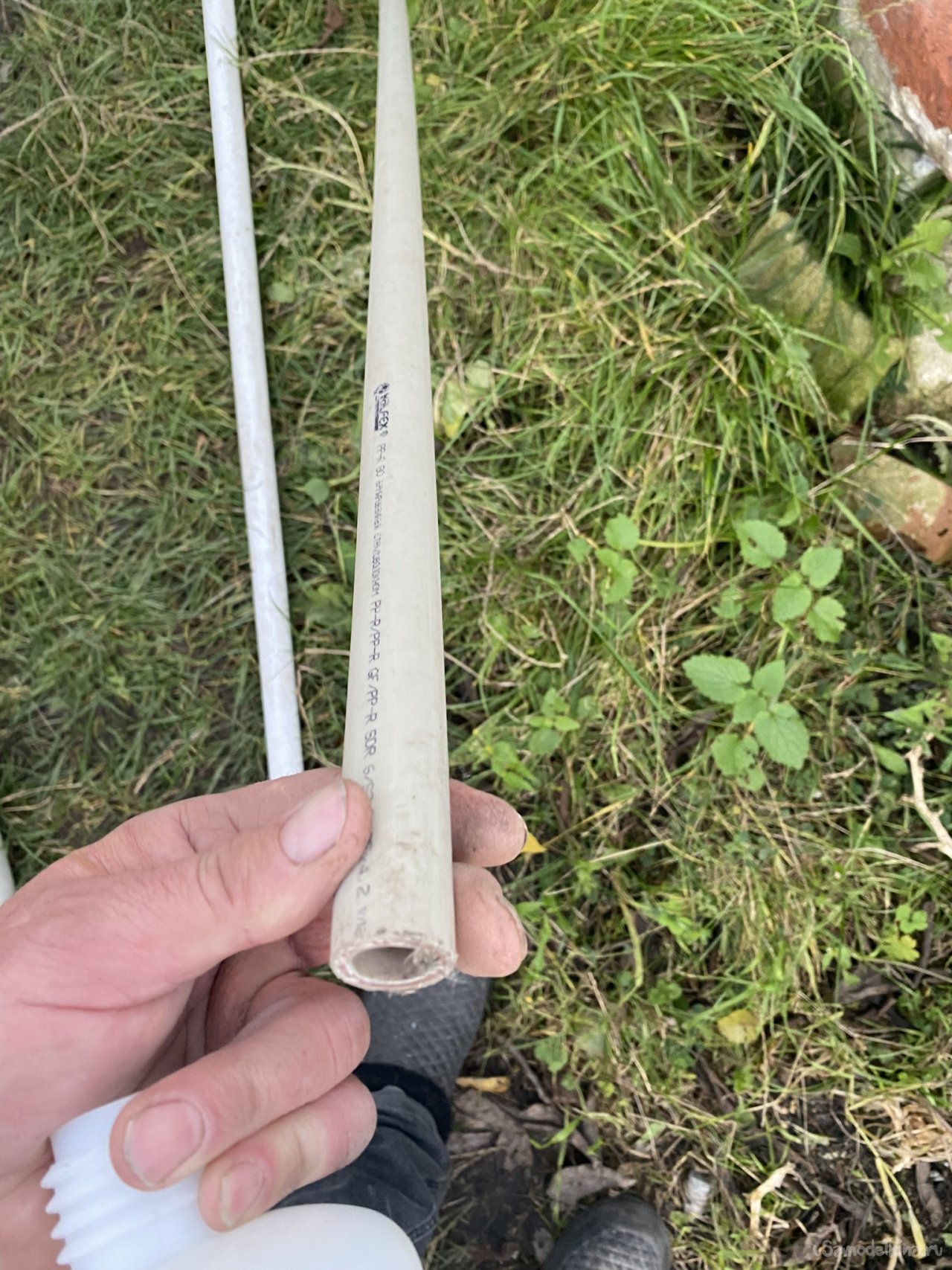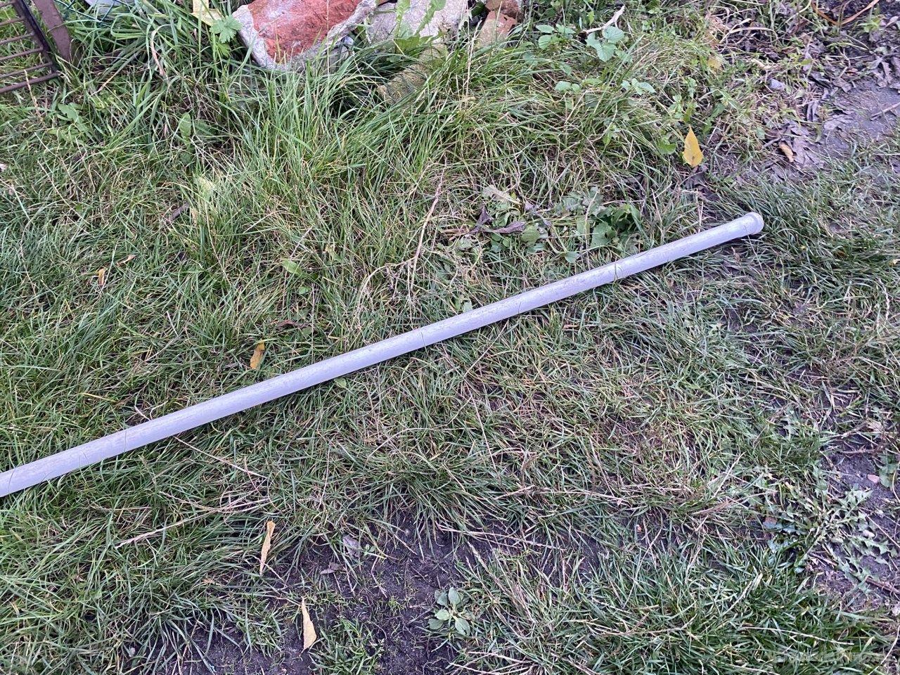 Теперь надо закрепить её на каком-то длинном шесте. Перебрал остатки труб. Из достаточно длинных нашлись канализационная "тридцатьдвойка" и полипропиленовая, армированная стекловолокном, "сороковка". Обе двухметровые (Остались после монтажа системы отопления и канализации дома):