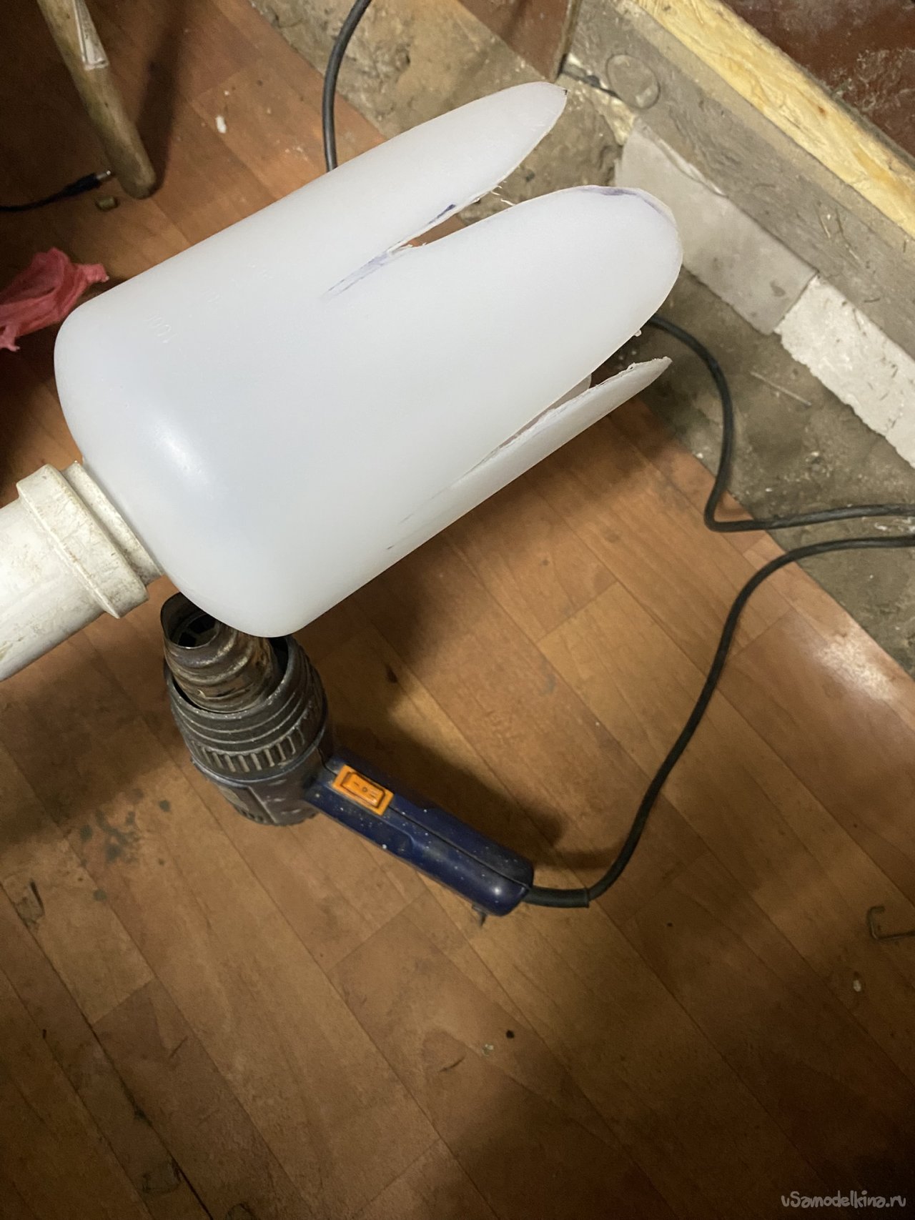 Прикидывая, как мне закрепить мой плодосборник, выбрал канализационную. Резьба горлышка не входила ни в одну из них, Но у "тридцатьдвойки" есть раструб с резиновым уплотнением, в который резьба "почти входит". Нагрел горлышко техническим феном до размягчения и с силой ввернул: