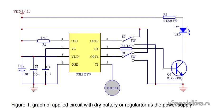 SGL8022W представляет собой одноканальный сенсорный чип для регулировки освещенности светодиодов. Этот чип может управлять
