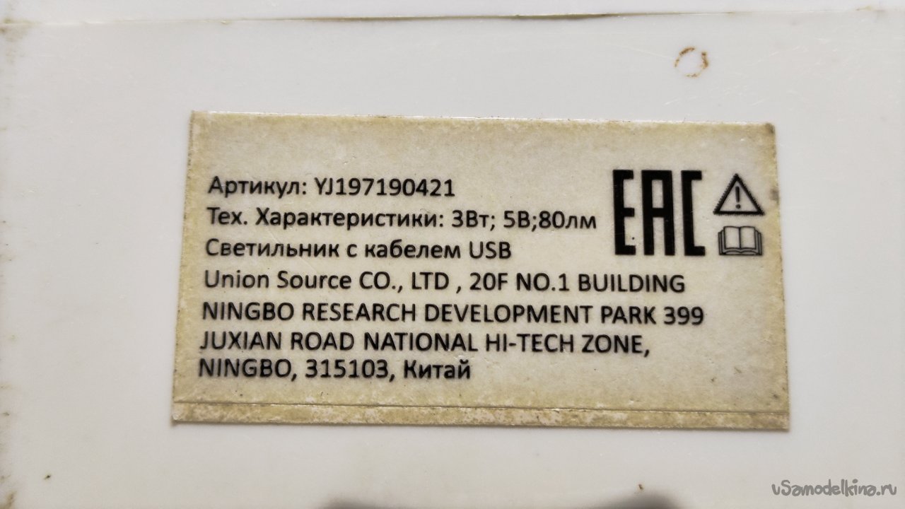 На табличке характеристики, из которых ясно, что светильник без аккумулятора.
