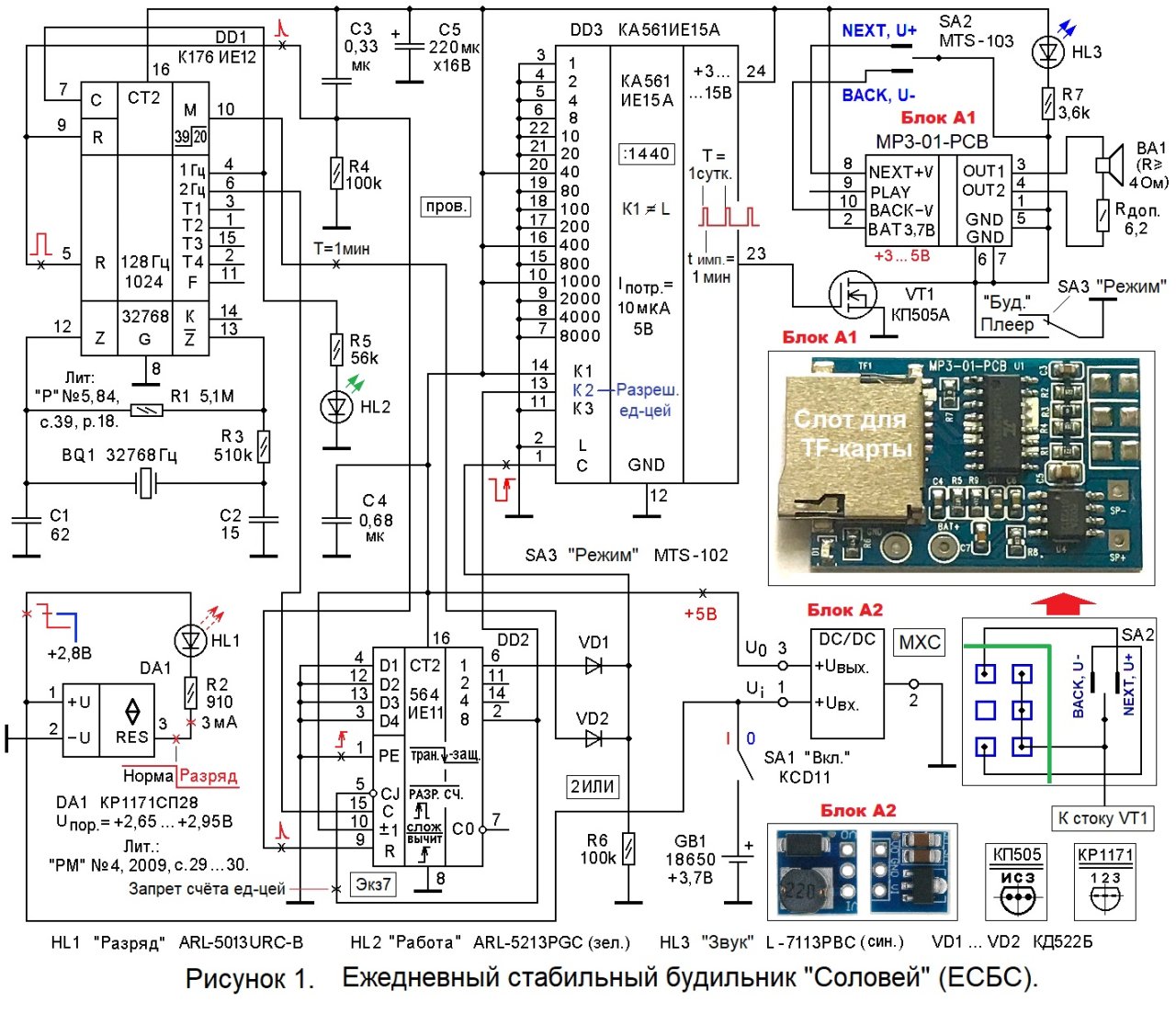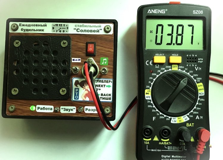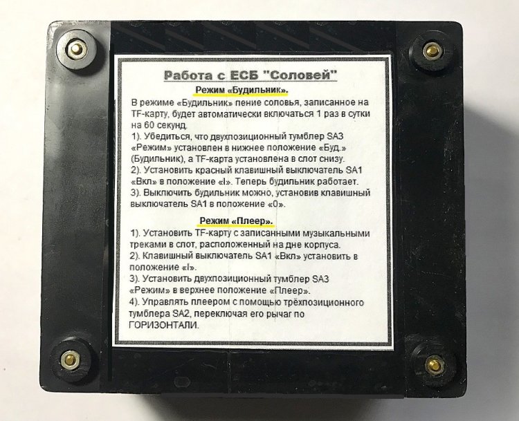 2). Установить красный клавишный выключатель SA1 «Вкл» в положение «I». Далее – просто не сомневаться, что завтра вас в назначенное время разбудит приятное пение соловья.