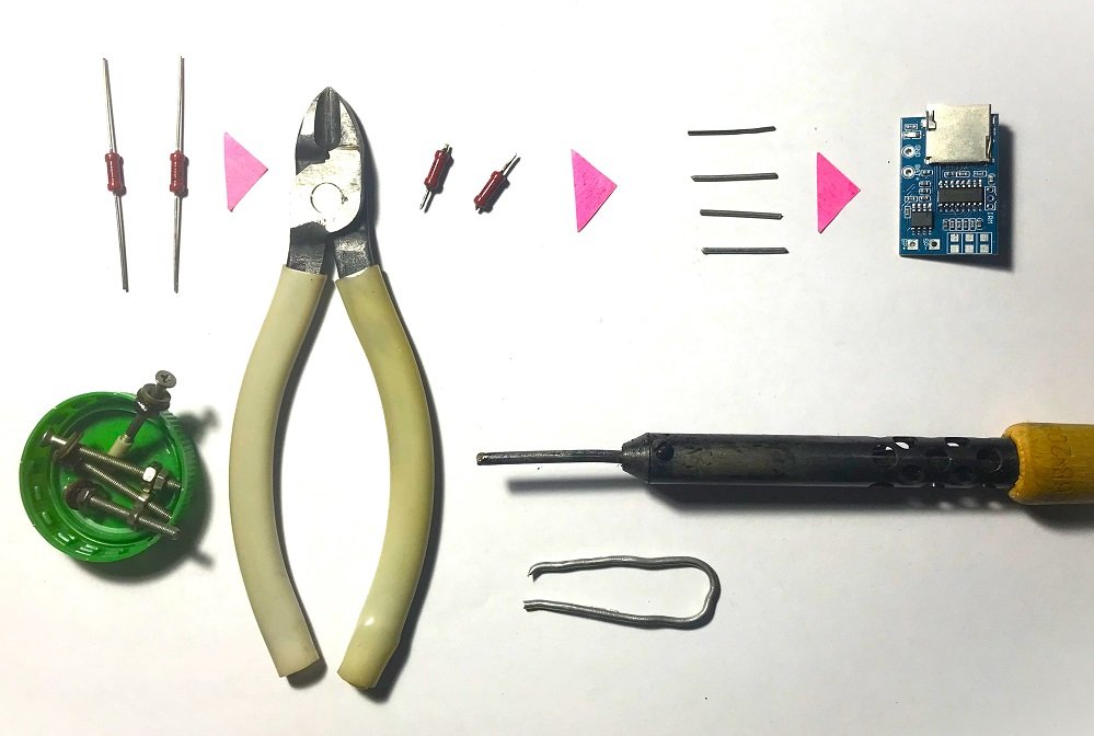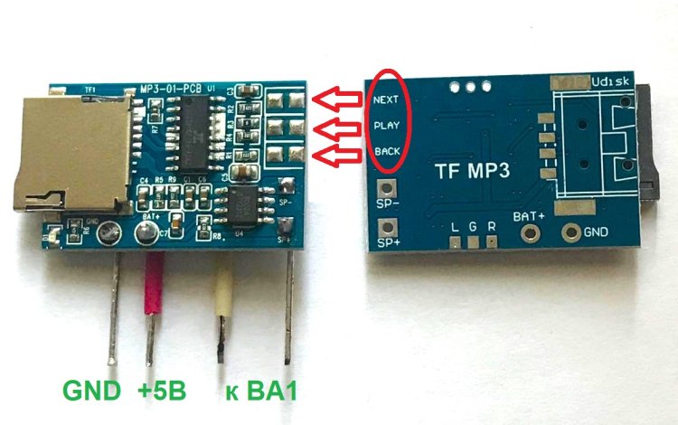 Назначение печатных квадратиков блока А1 можно срисовать с прототипа, имеющего маркировку TF MP3.