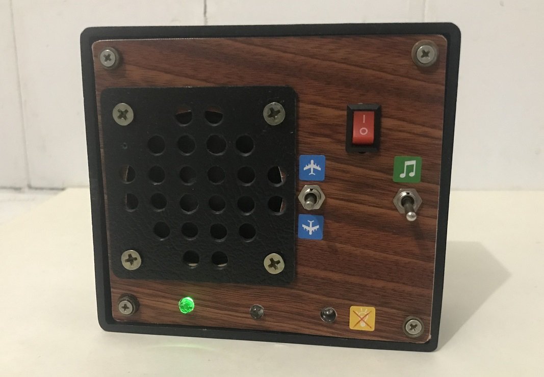 Вид на ЕСБС спереди. Включён режим «MP3» (плеер), при котором светится синий светодиод HL3 «Звук».