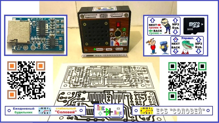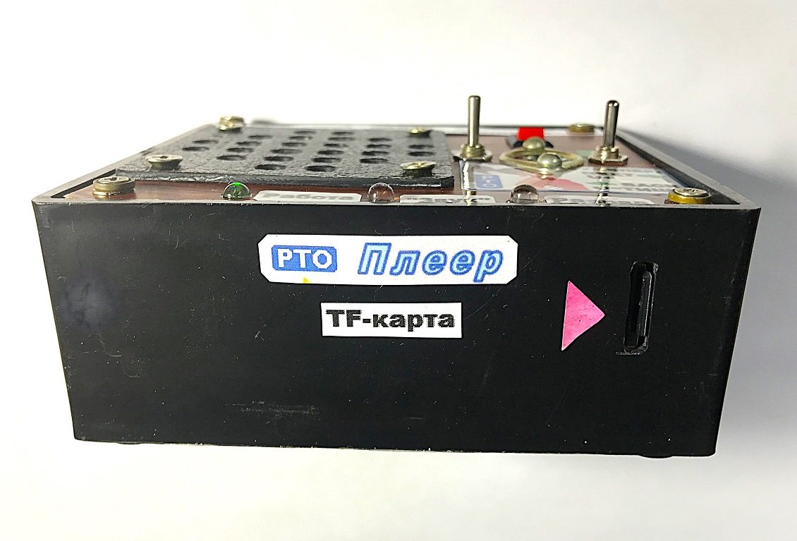 Плеер состоит из модуля MP3-01-PCB производства КНР. Подробное описание работы, полуоригинальная схема включения и внешний вид модуля можно найти в статье «Сетевой плеер, управляемый тумблером» (СПУТ). Для этого на сайте «У Самоделкина» в строку поиска достаточно ввести четыре буквы: СПУТ и нажать клавишу «ENTER».